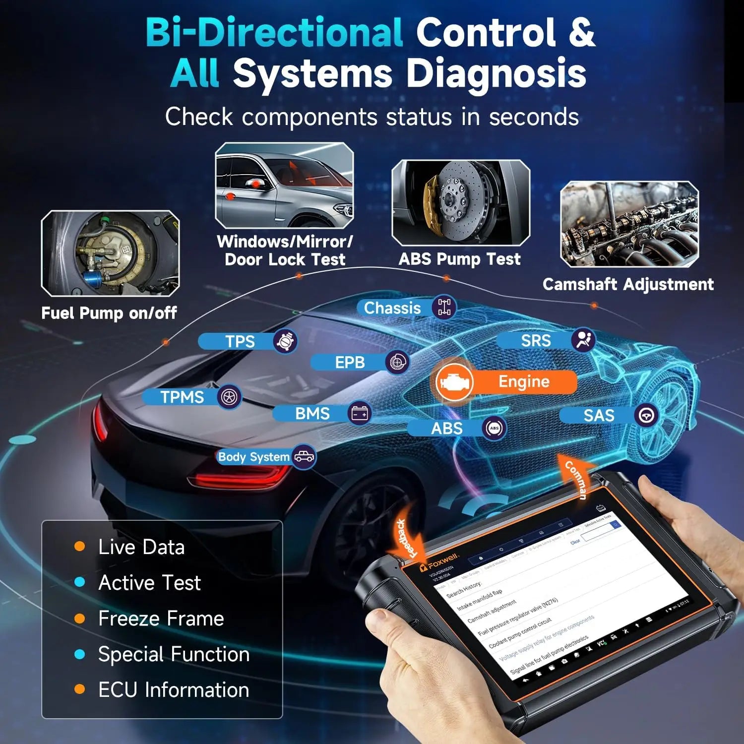 Descubra diagnósticos ao nível de concessionária com a Ferramenta de Diagnóstico Automóvel FOXWELL NT909. Este poderoso scanner de todos os sistemas oferece leitura/apagamento abrangente de códigos, dados ao vivo e testes ativos em mais de 125 marcas de automóveis, suportado pelos protocolos CAN FD e DOIP. O controlo bidirecional desbloqueia funções avançadas, codificação ECU e mais de 30 capacidades de reset para manter os veículos a funcionar no seu melhor. O NT909 possui um ecrã tátil de 8 polegadas para navegação fácil, conectividade BT sem fios e impressão conveniente de relatórios via Wi‑Fi, tornando-o ideal tanto para mecânicos caseiros como para oficinas profissionais. Com 3 anos de atualizações de software gratuitas e 2 anos de garantia, pode diagnosticar, calibrar e fazer a manutenção dos veículos com confiança.