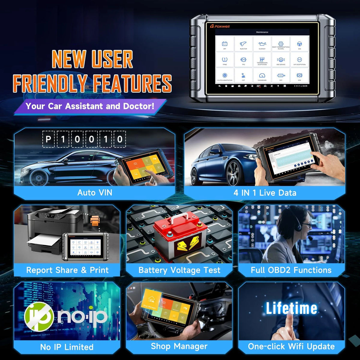 Ferramenta de Diagnóstico Automóvel Foxwell NT909 com CAN FD DOIP Scanner OBD2 Todos os Sistemas Codificação ECU Bidirecional e Reset 125+ Marcas de Automóveis
