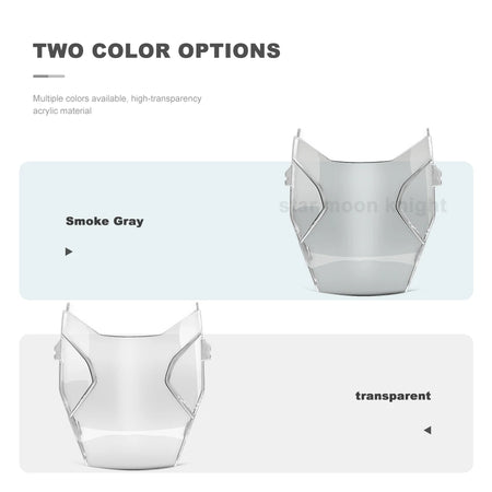 - Escolha Cinzento Fumado ou Transparente para combinar com a cor da sua moto e a aparência da luz clara.