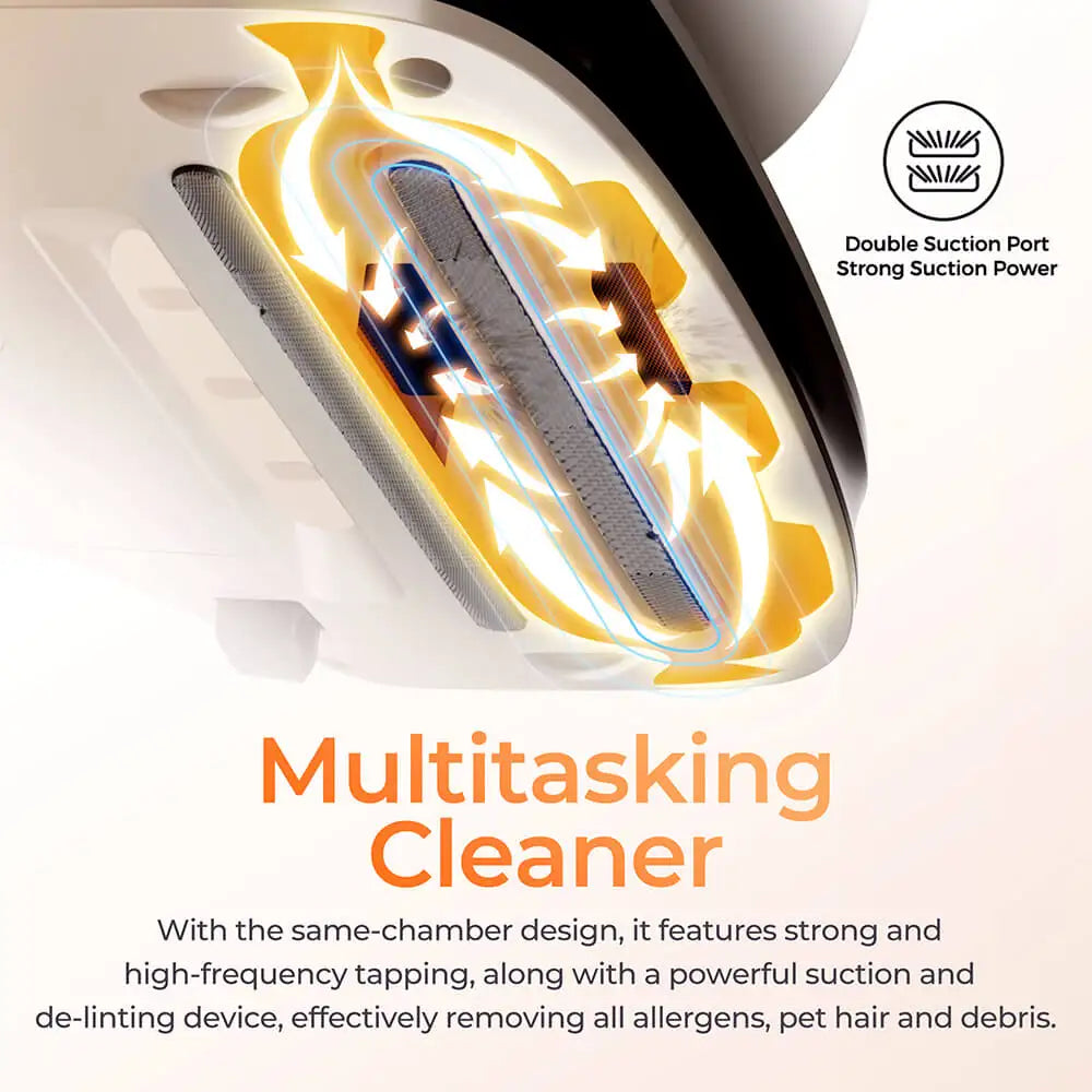 - Limpe profundamente colchões, sofás e têxteis grandes com sucção de alta eficiência de 12KPa e batidas a 80.000 vezes por minuto para remover pó e ácaros teimosos.