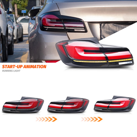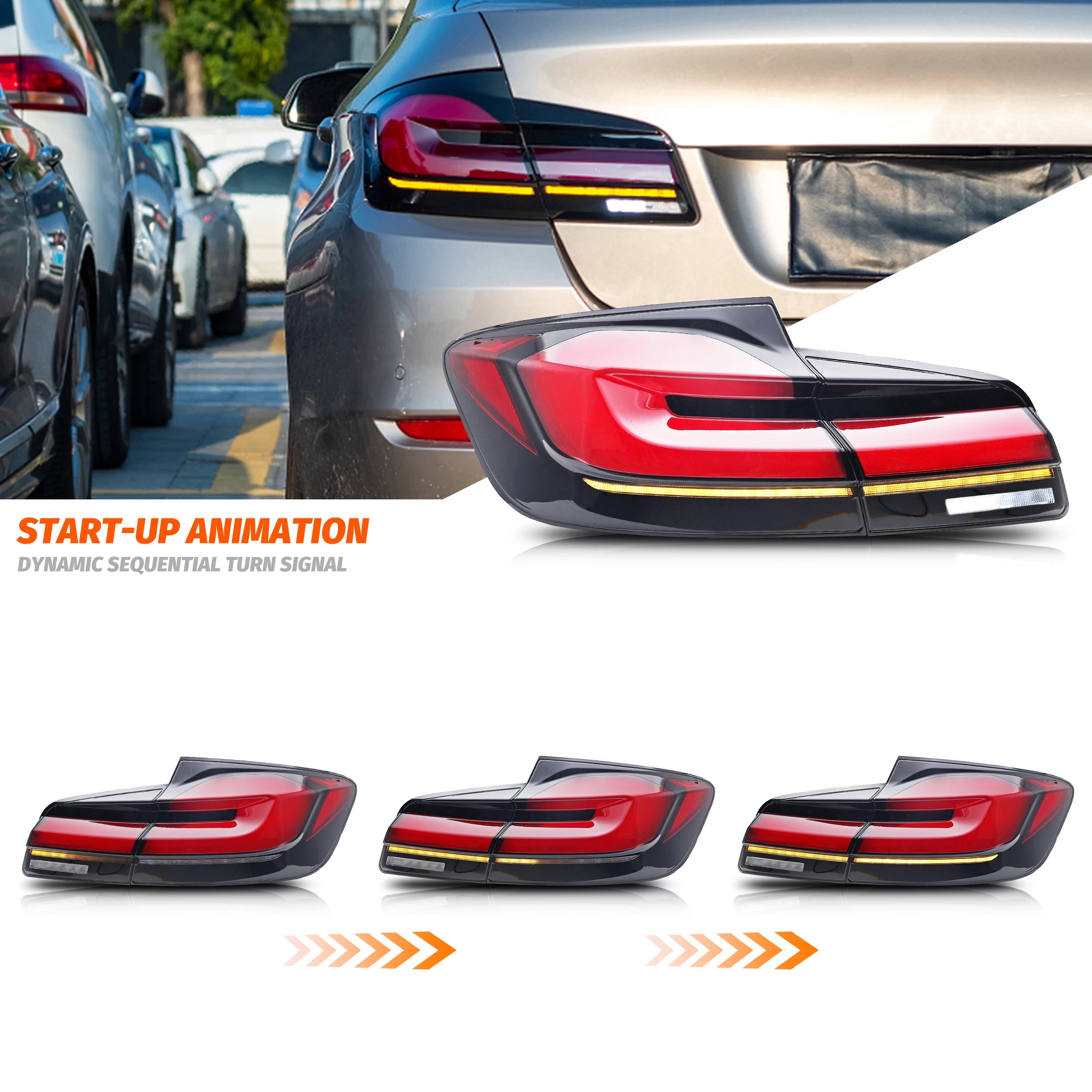 Luzes traseiras LED BMW Série 5 F10 M5 com animação dinâmica e piscas sequenciais, farolins traseiros ABS