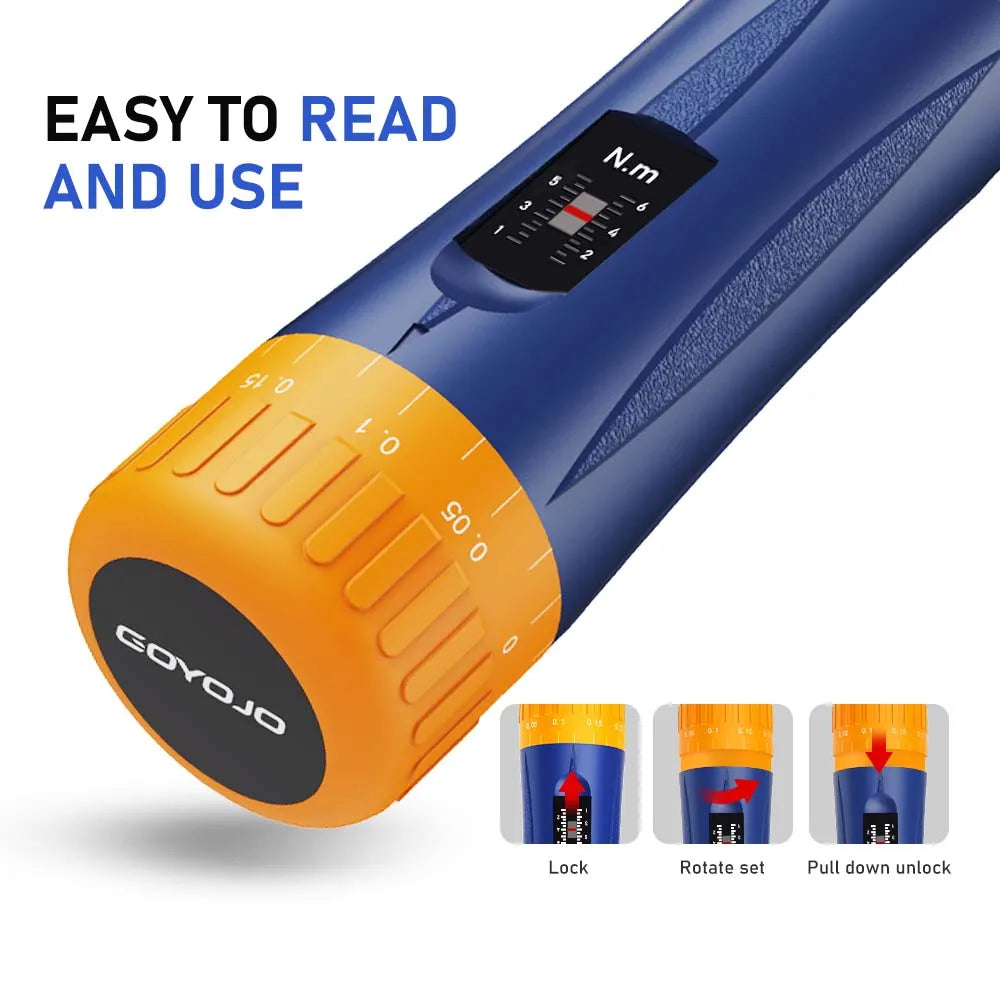 Os principais benefícios incluem ajustes precisos com um intervalo de binário de 1–6 Nm e uma margem de precisão de +/- 6%. O suporte magnético de pontas 1/4” torna as trocas rápidas e seguras, enquanto as pontas em aço de liga S2 proporcionam durabilidade e fiabilidade para uso repetido. A pega premium em nylon oferece uma aderência confortável e antiderrapante para sessões prolongadas, tornando-o ideal para uso profissional e entusiastas do DIY.