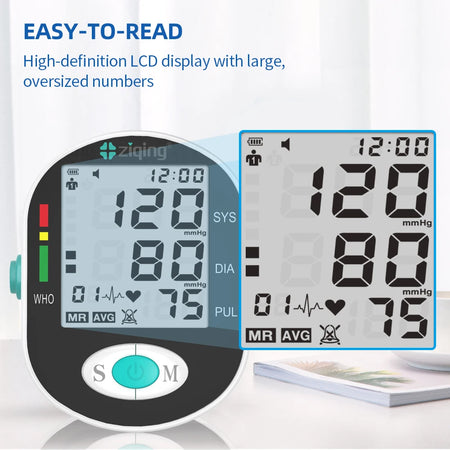 Conheça o Monitor Digital de Pressão Arterial de Braço Automático com Frequência Cardíaca LCD da Ziqing. Este dispositivo médico doméstico compacto oferece leituras rápidas e precisas da pressão arterial sistólica e diastólica, juntamente com a frequência cardíaca, utilizando um método oscilométrico. As inflações automáticas tornam as medições confortáveis, enquanto um simples arranque com um toque permite monitorizar a sua saúde com facilidade todos os dias. O grande ecrã LCD mostra os resultados claramente para leituras rápidas, e a braçadeira adapta-se a uma ampla gama de tamanhos de braço, de 22 a 44 cm, tornando-o adequado para a maioria dos adultos. Construído com segurança e qualidade em mente, possui certificações CE, FCC, RoHS e WEEE para lhe proporcionar tranquilidade em casa ou em movimento.