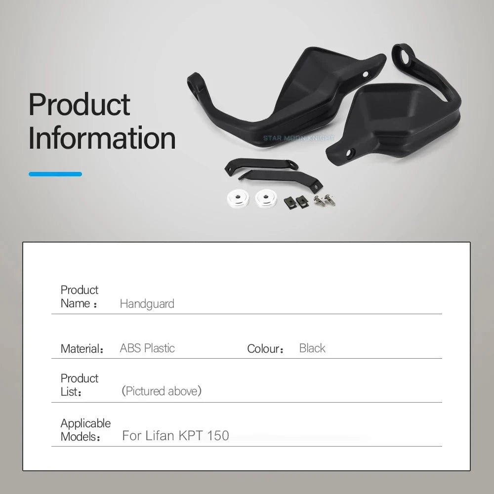 - 2 x escudos de protetor de mão em plástico ABS (esquerdo e direito) compatíveis com Lifan KPT150 e KPT200