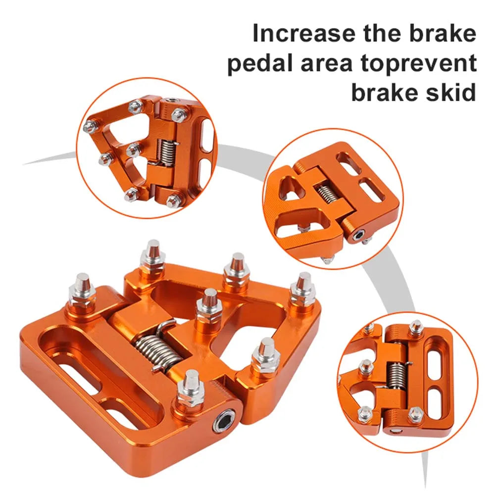 - O design dobrável absorve impactos de pedras, protegendo o pedal e a alavanca do travão.