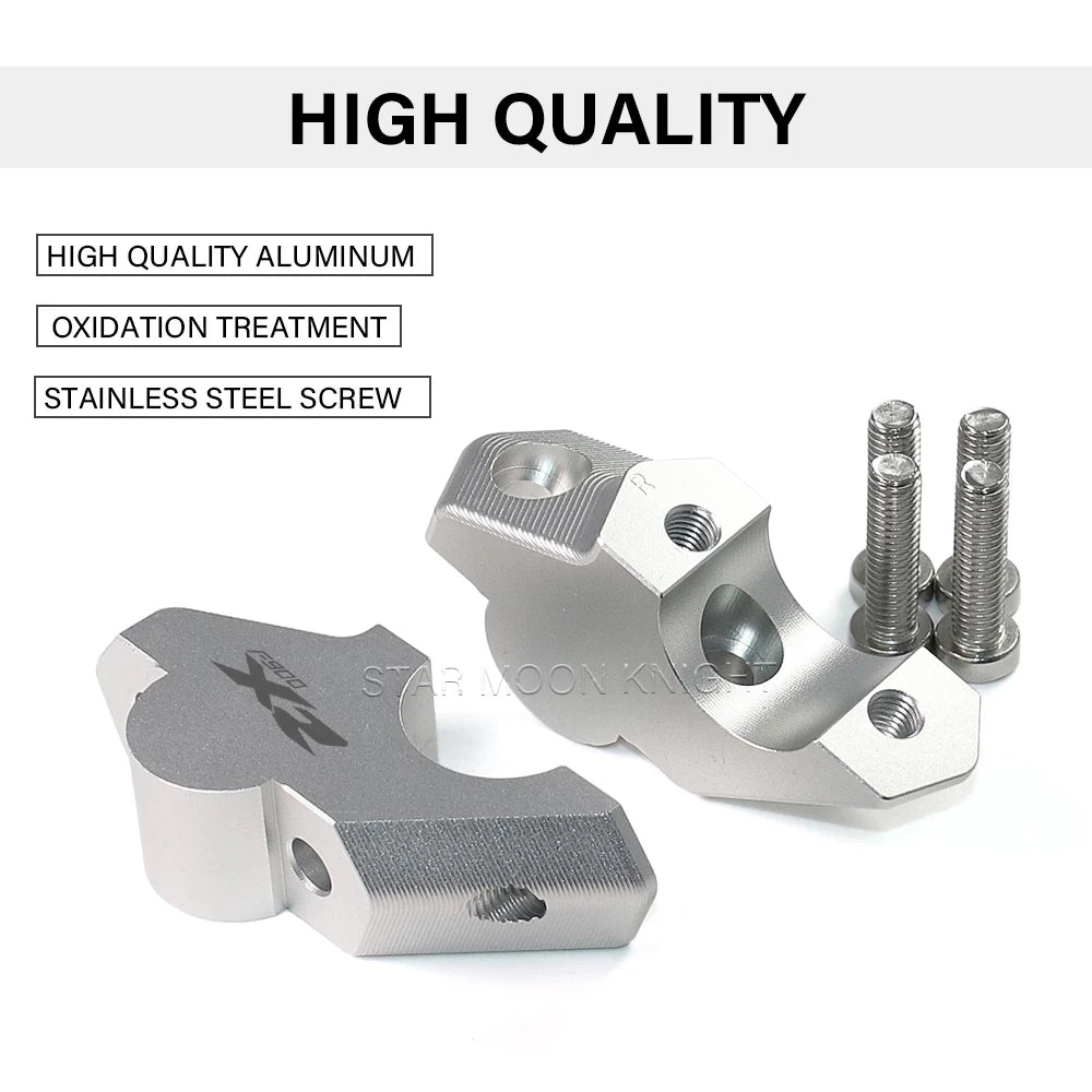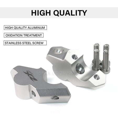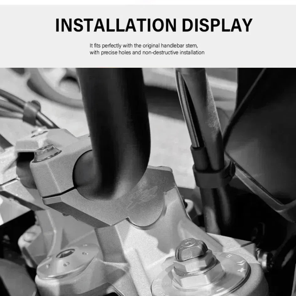 Fabricado em alumínio de alta resistência e acabado em prateado anodizado, resiste a vibrações e aos elementos, ao mesmo tempo que adiciona uma sensação premium ao seu cockpit. O design oferece uma posição de assento relaxada e ereta, controlo melhorado e uma experiência de direção mais direta. A instalação é rápida e simples com o conjunto de parafusos incluído; não são necessárias extensões de cabo Bowden, pelo que não precisa de reencaminhar os cabos. Cada unidade é fresada individualmente para precisão e compatibilidade com BMW F900R (2020+), F900XR (2020+), F850GS (2018+) e F850GS ADV (2019+).