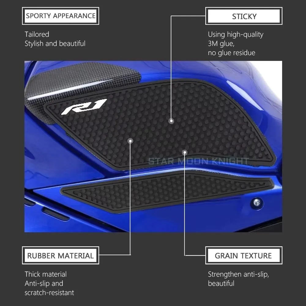 Kit de Almofadas para Depósito Yamaha YZF R1 R1M Feito de Borracha, Almofadas de Tração para Joelho em Três Partes para 2015-2021