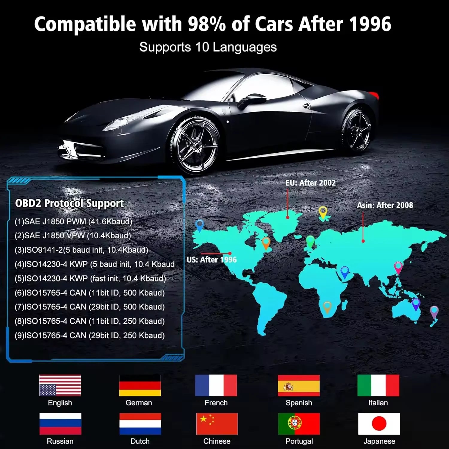 Note: For best results, use with vehicles that support the OBD-II standard and follow all safety guidelines during diagnostics.
