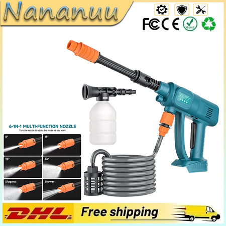 Experimente o poder de limpeza sem fios com a Pistola de Lavagem de Carros de Alta Pressão Sem Fios Nananuu com Tubo Longo. Fabricada em ABS durável e cobre, esta ferramenta versátil é feita para lavagem de carros, cuidado do jardim e limpeza exterior diária. O seu design sem fios liberta-o da busca por tomadas, enquanto fornece pressão alta de forma confiante para cortar a sujidade e a lama. Com uma pressão máxima de 60 Bar, um fluxo de 3,5 L/min e um tubo de água de 5 metros, obtém uma limpeza rápida e eficaz com excelente alcance. Nota: Este link não inclui baterias.