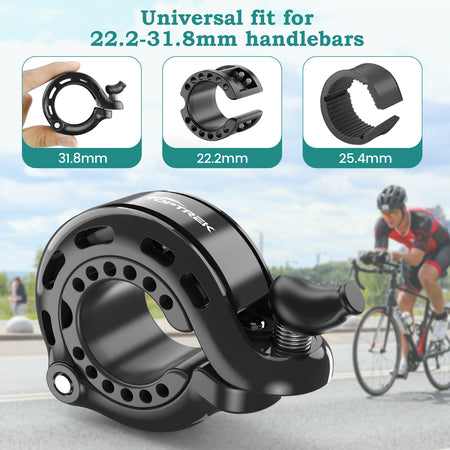 - Compatibilidade: Diâmetro do guiador 22,2–31,8 mm; almofada interior separada da campainha com opções de almofada macia e dura