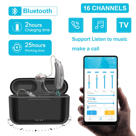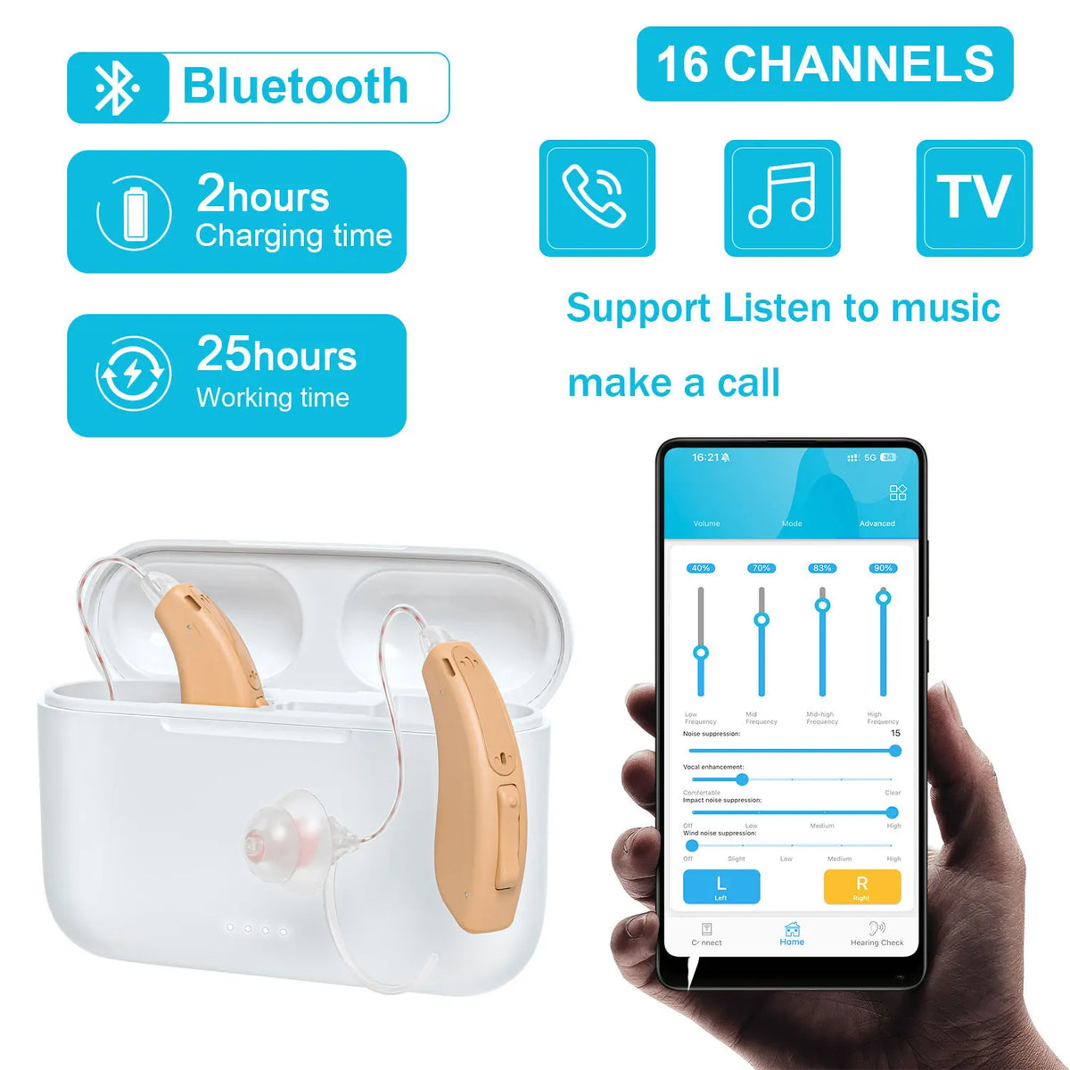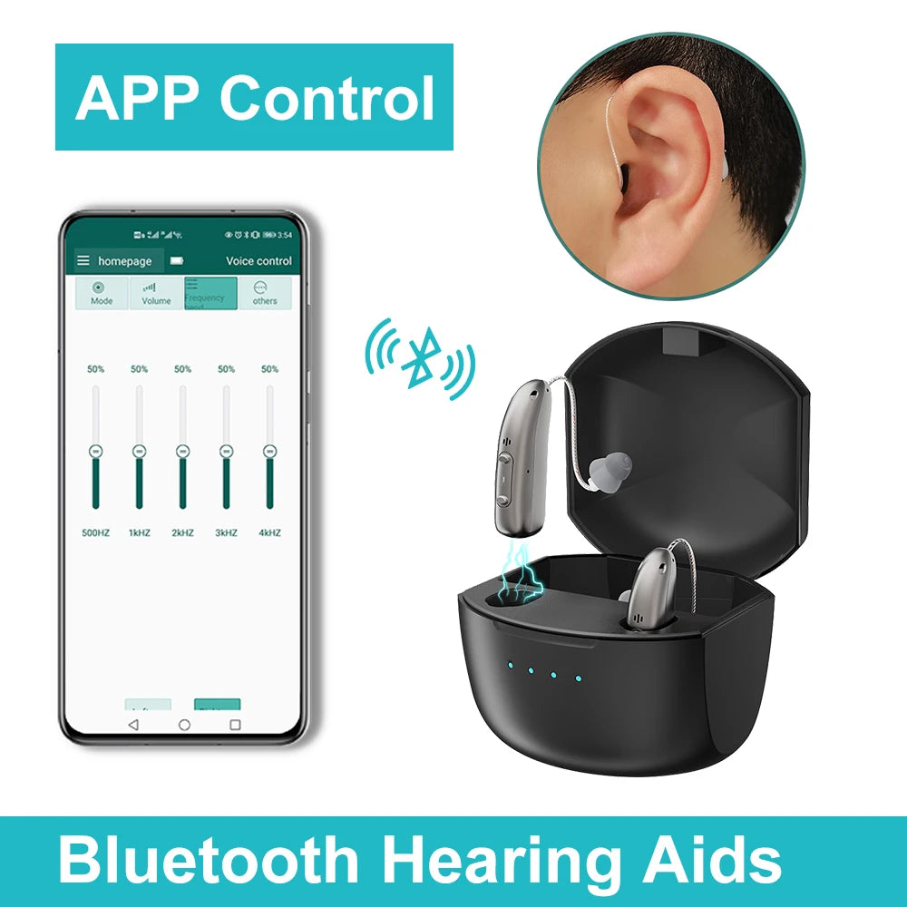 Aparelho Auditivo Digital Bluetooth Recarregável para Surdez, Amplificador de Som Portátil para Idosos
