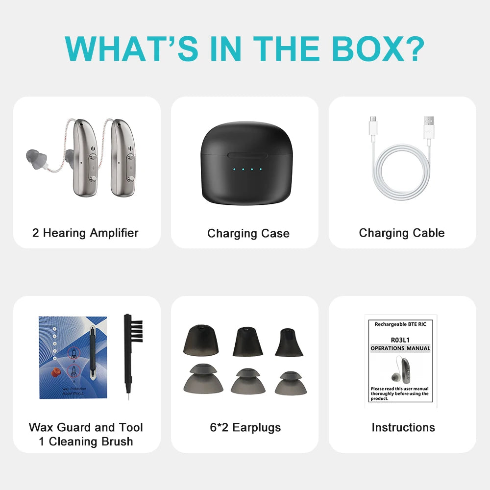 - Tipo: Aparelho auditivo recarregável atrás da orelha