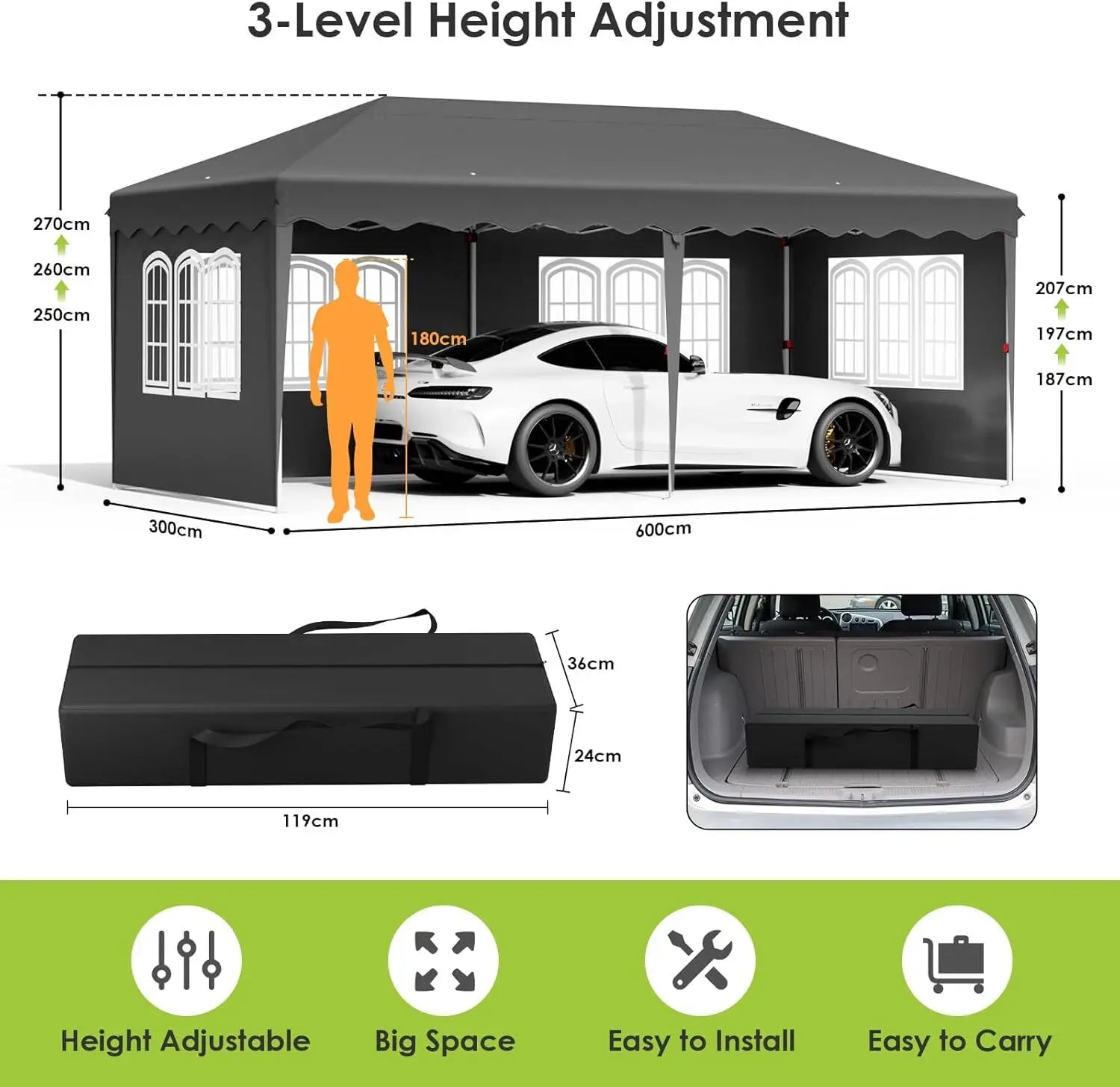 Pavilhão Popup Gazebo 3x6m Impermeável Tenda Dobrável UV50