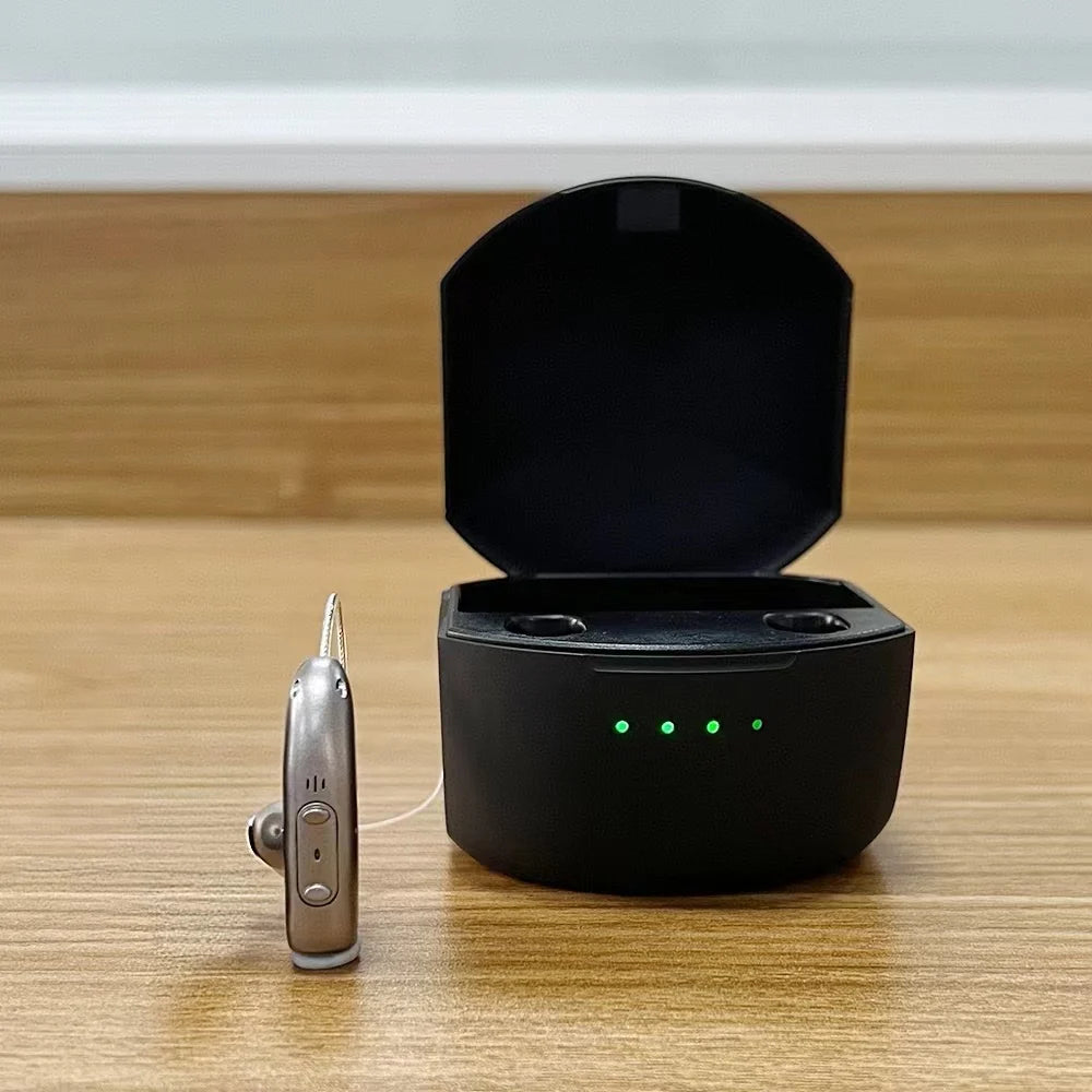 Aparelhos Auditivos Bluetooth OTC Autoajustáveis são concebidos para perda auditiva ligeira a moderada, oferecendo sons claros e conforto numa forma compacta e discreta. Com um design autoajustável e um potente sistema de processamento de 10 canais, estes aparelhos adaptam-se a ambientes auditivos do dia a dia — desde conversas calmas a ruas movimentadas. A construção leve (7mm x 33mm x 10mm) e um peso total de apenas 2,87 g garantem conforto durante todo o dia, para que possa usá-los com confiança desde a manhã até à noite. Um método de carregamento USB 5V alimenta uma bateria fiável de iões de lítio, oferecendo desempenho duradouro para uso prolongado. A conectividade Bluetooth emparelha com uma aplicação dedicada para controlo fácil, afinação e definições personalizadas. Guias em vídeo e um vídeo de funcionamento para dispositivos Apple estão disponíveis para ajudar a começar rapidamente.