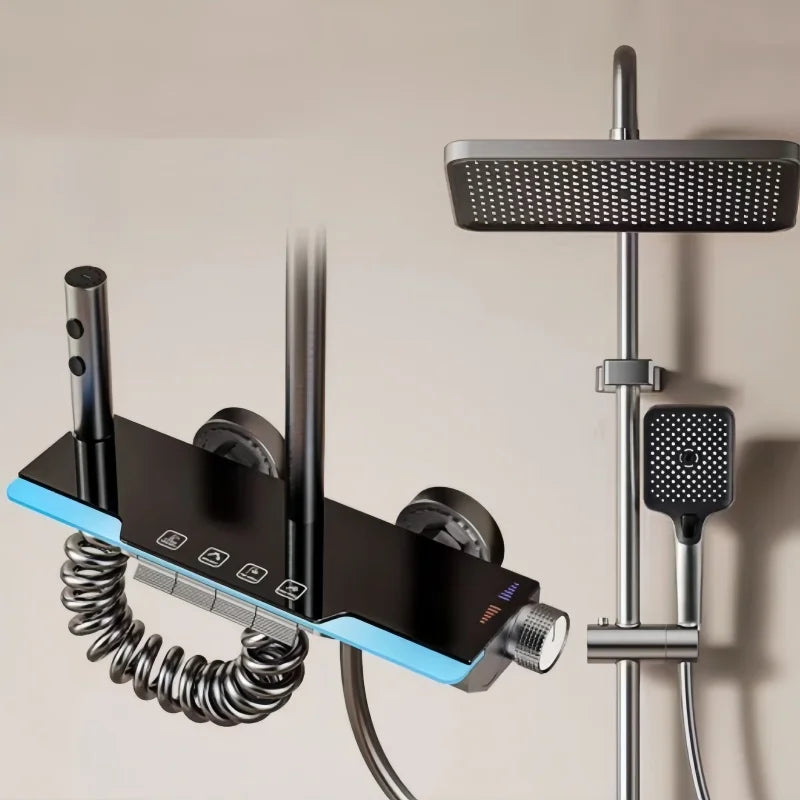 Conjunto de Chuveiro com Luz Ambiente Sistema de Chuveiro para Casa de Banho Hotel Apartamento Moderno com Display Digital de Temperatura Conjunto de Torneiras