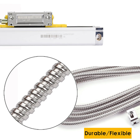 Os principais benefícios incluem uma cabeça de leitura robusta com cinco rolamentos, um sensor de grade do tipo fechado e uma linha de sinal protegida por isolamento em múltiplas camadas para proteção contra água e ferrugem. A fonte de luz utiliza LEDs infravermelhos importados para desempenho estável, enquanto a resistência especial ao óleo e à corrosão ajuda a suportar condições severas de oficina. Sua alta capacidade de anti-interferência, estabilidade, velocidade (até 60 m/min) e resistência à vibração tornam-no adequado para feedback rápido e preciso em uma variedade de ferramentas de máquina.
