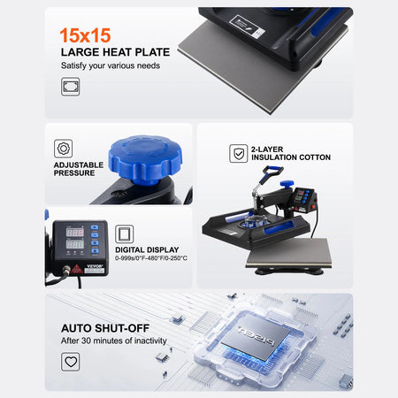 Nossa prensa térmica vem com múltiplos acessórios, permitindo que você transfira facilmente belos designs para T-shirts, fronhas, chapéus, canecas e mais. O braço oscilante de 360 graus proporciona um carregamento e descarregamento suaves, ajudando você a alcançar resultados consistentes com menos esforço. A prensa para copos de 30 oz incluída expande suas possibilidades criativas, permitindo que você crie utensílios de bebida chamativos que se destacam em eventos, mercados ou como presentes atenciosos.