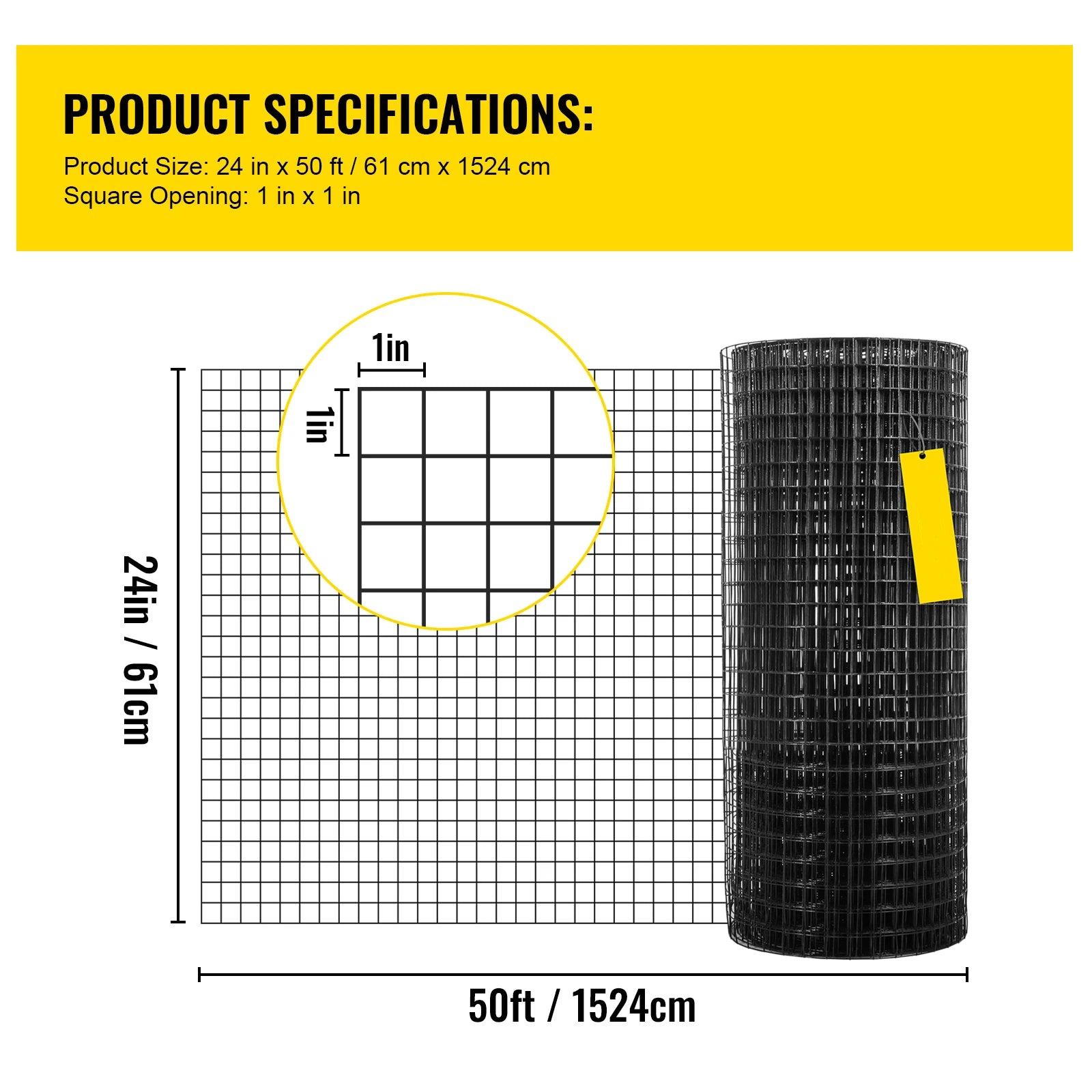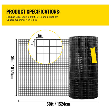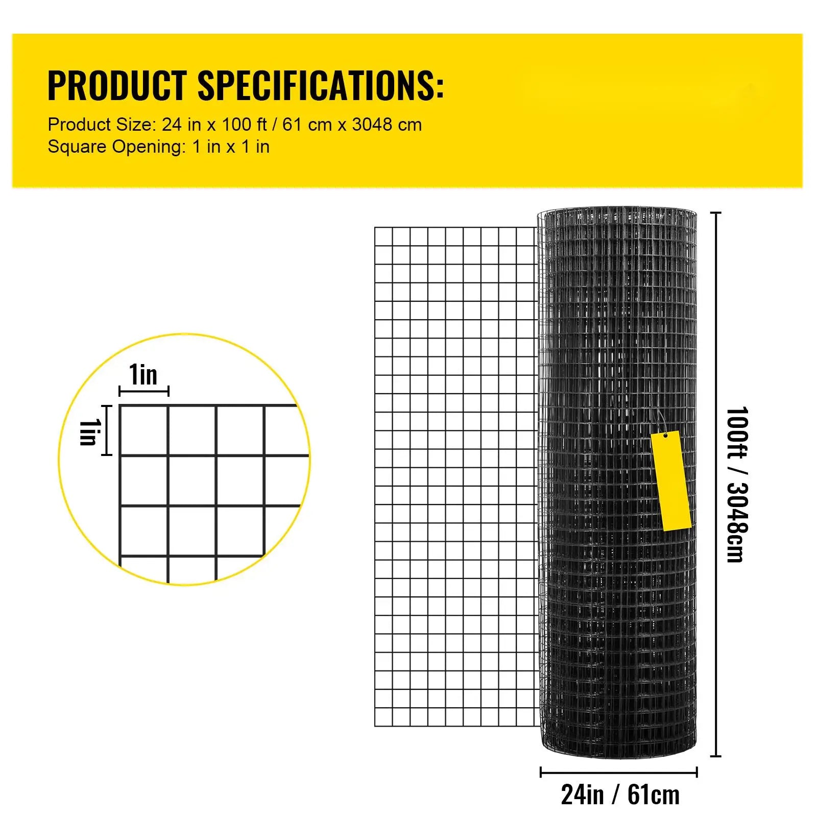 - 1 x Rolo de Tecido de Hardware de Cerca de Arame Soldado Revestido a Vinil (malha de 1" x 1", 16 GA, revestimento de vinil preto)