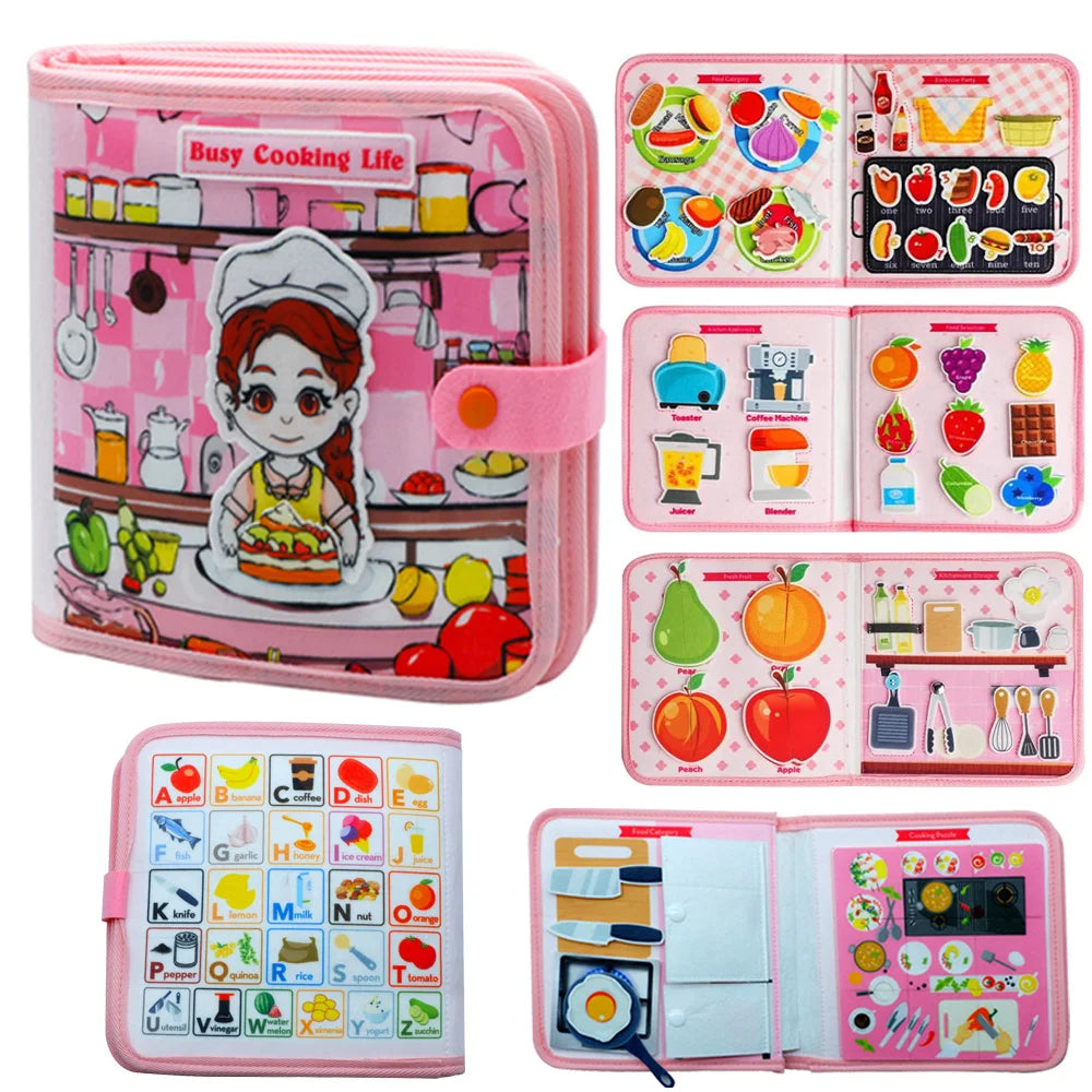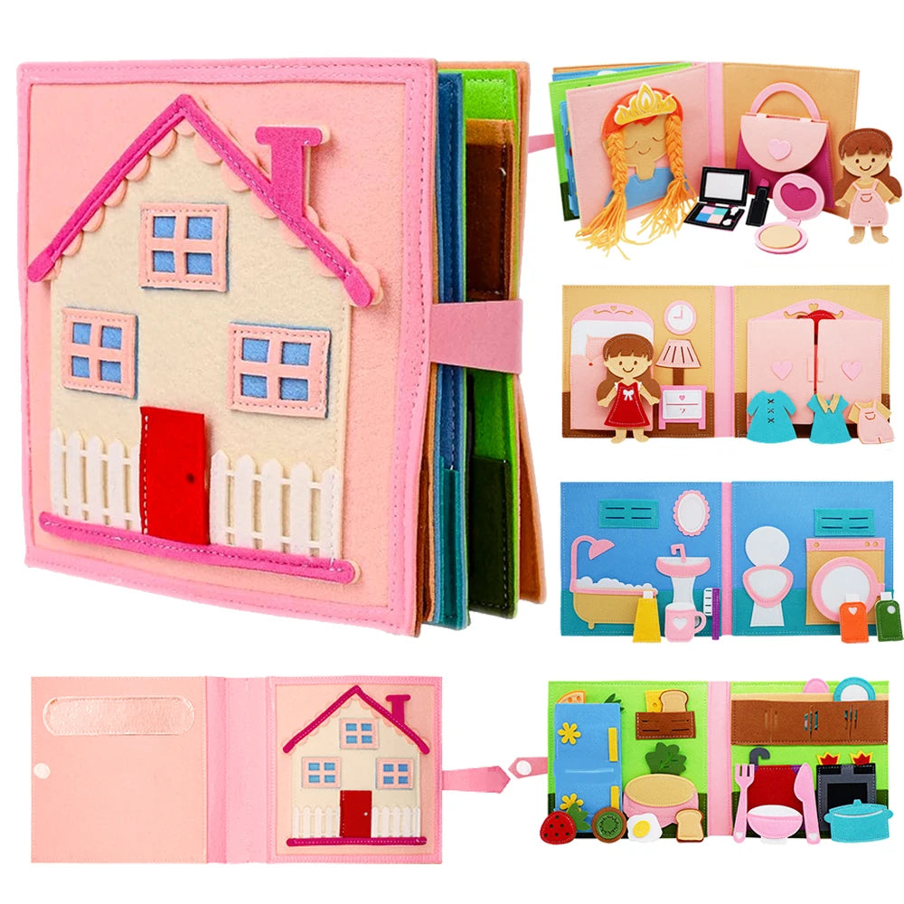 Livro Ocupado Montessori para Crianças - Livro Silencioso de Histórias e Atividades em Feltro 3D para Aprendizagem Pré-escolar e Viagens