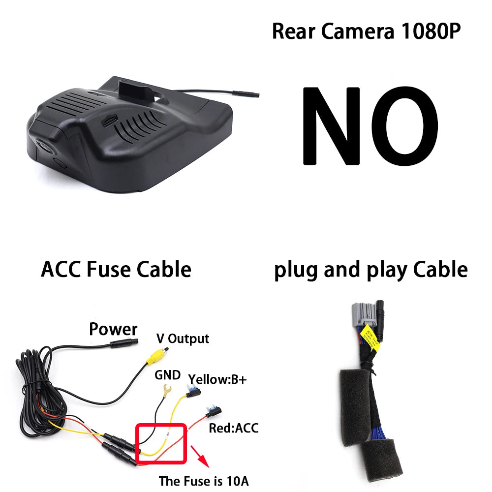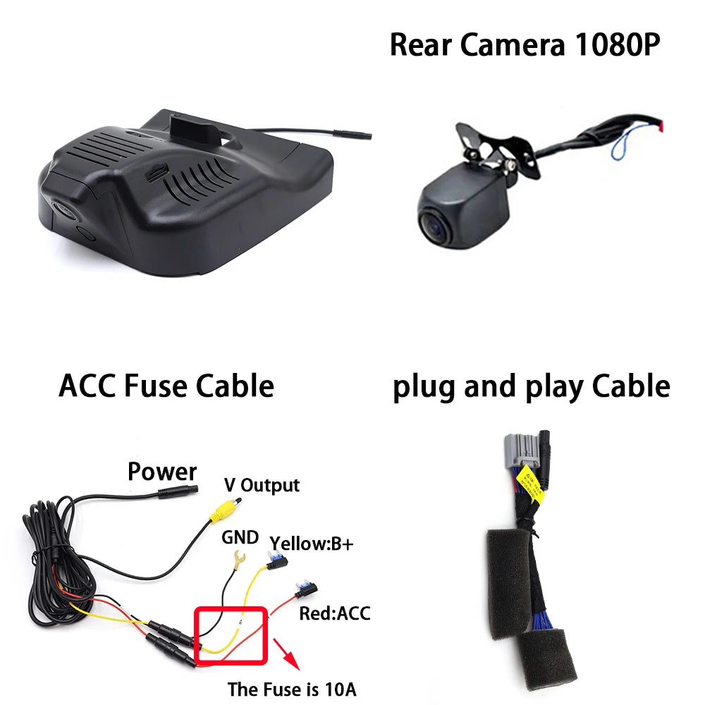 - Esta é uma câmara de vigilância plug-and-play projetada para ser alimentada pelo cabo de alimentação do sensor de chuva ou da luz de leitura do seu veículo, oferecendo uma instalação simples e não intrusiva.