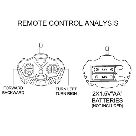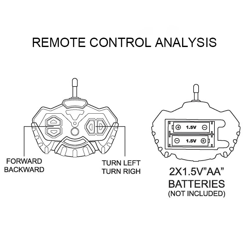 - Sursa de alimentare: Vehiculul folosește 3 x AA (nu sunt incluse); telecomanda folosește 2 x AA (nu sunt incluse)
