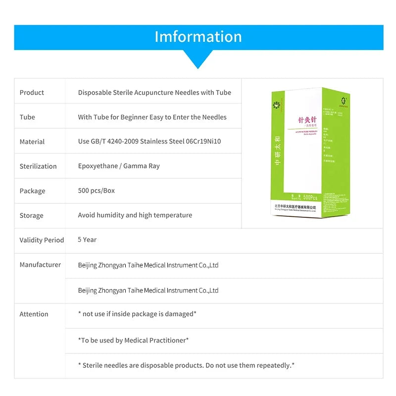 Experimentați acupunctura sigură și precisă cu Ace Sterile pentru Acupunctură în Tub, de unică folosință, în dimensiuni variate de la ZHONGYANTAIHE. Aceste ace din oțel inoxidabil vin într-un tub convenabil pentru a ajuta începătorii să introducă acul lin, și sunt sterilizate prin raze gamma pentru o igienă de încredere. Fiecare ac este conceput pentru utilizare unică de către profesioniști medicali, asigurând standarde înalte de siguranță în clinici sau spa-uri. Cu certificare CE și licență de producție, puteți avea încredere în calitate și consistență pentru o gamă largă de terapii — de la îngrijirea postoperatorie și ameliorarea grețurilor legate de chimioterapie până la gestionarea durerii și programe de wellness. Disponibile în mai multe dimensiuni (opțiuni Mărimea B și Mărimea C) pentru a se potrivi diferitelor nevoi de tratament, aceste ace sunt ideale pentru utilizare profesională și practică acasă sub supraveghere. Origine: China; Ambalaj: Pungă.