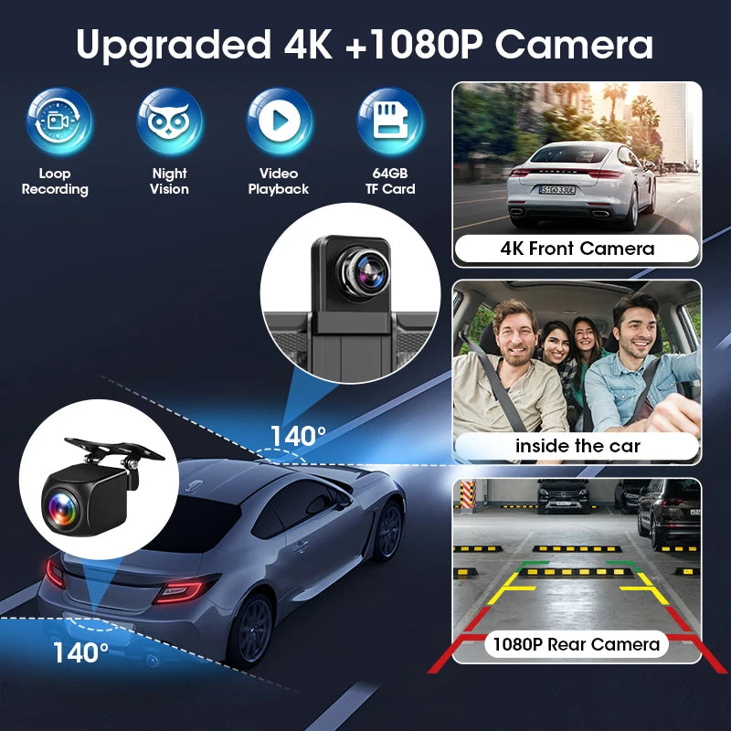 - Bucură-te de imagini ultra-clare din față în 4K (3840x2160) pentru dovezi detaliate și decizii de condus mai sigure, zi și noapte.