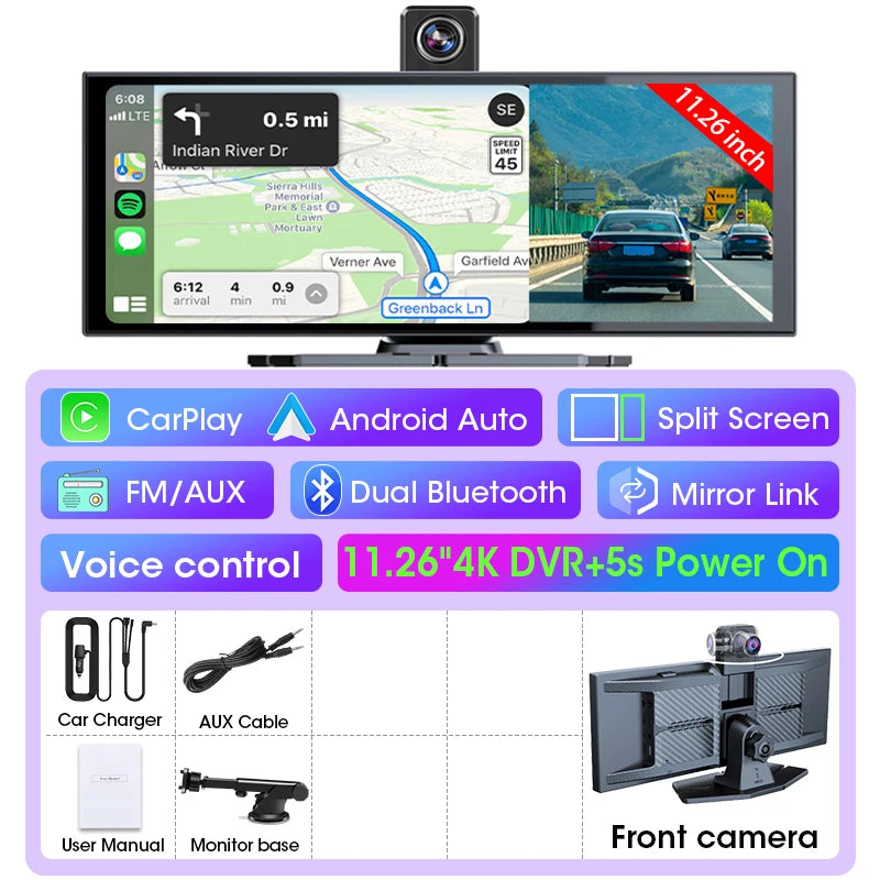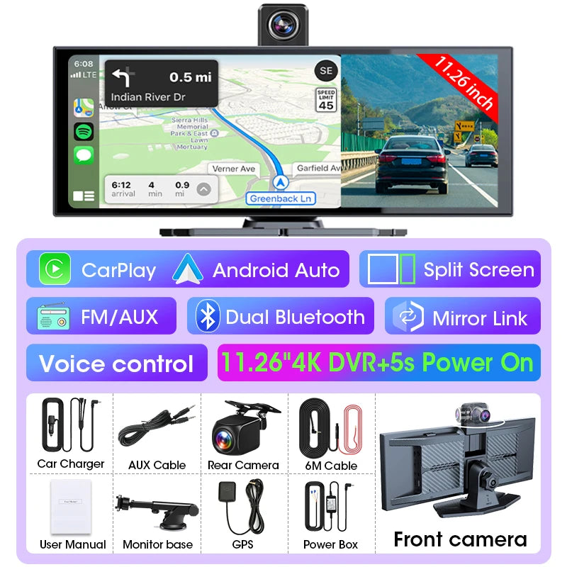 Descoperă Camera Auto DVR 4K de 11,26 inch cu CarPlay Wireless GPS — un asistent premium, all-in-one pentru condus, conceput să protejeze, să simplifice și să îmbunătățească fiecare călătorie. Cu un ecran tactil IPS mare de 11,26 inch, înregistrare frontală 4K, cameră spate opțională, GPS încorporat și compatibilitate perfectă cu CarPlay, această cameră auto te ajută să capturezi dovezi cristaline, să navighezi hands-free și să monitorizezi vehiculul în timp real. Proiectată pentru fiabilitate pe drumurile din UE, integrează funcții inteligente precum Wi-Fi, Bluetooth, control vocal și un senzor G robust pentru a proteja înregistrările în caz de incidente. Toate echipamentele electronice și mecanice, dispozitivele și mașinile vândute de InterCyprus către țările UE sunt certificate CE și beneficiază de o garanție de doi ani.