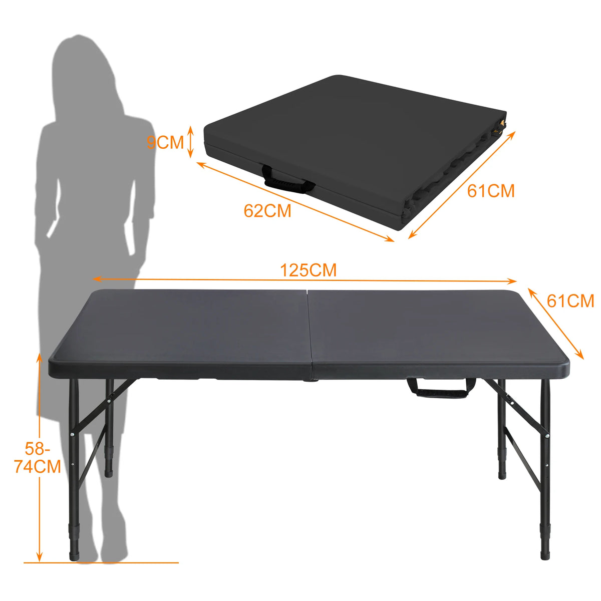 - 1 x Masă portabilă robustă de 125 cm cu înălțime reglabilă