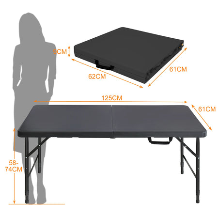 Masă portabilă de 125 cm, rezistentă, cu înălțime ajustabilă