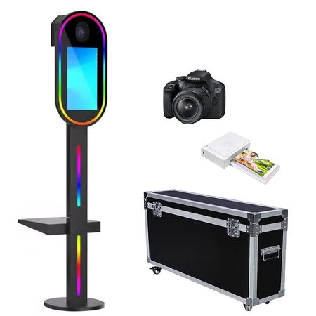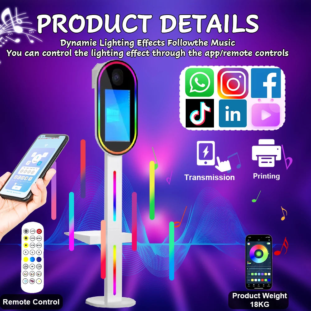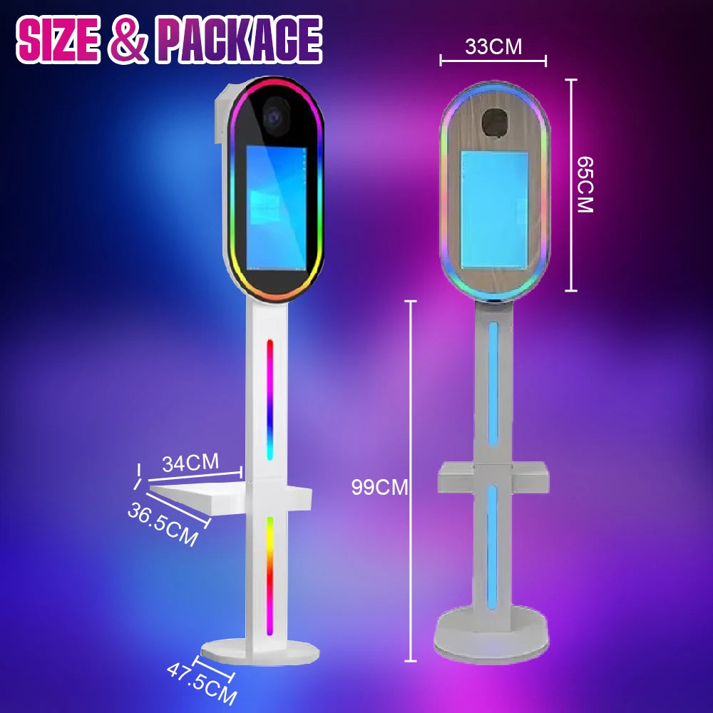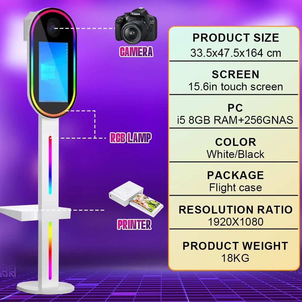Indiferent dacă sunteți un profesionist în închirieri sau planificați o sărbătoare memorabilă, această cabină foto vă ajută să capturați momente cu stil și ușurință. Ecranul tactil selfie de 15,6 inci invită participarea oaspeților, în timp ce iluminarea RGB vă permite să adaptați atmosfera pentru a se potrivi culorilor evenimentului dumneavoastră pentru fotografii remarcabile.