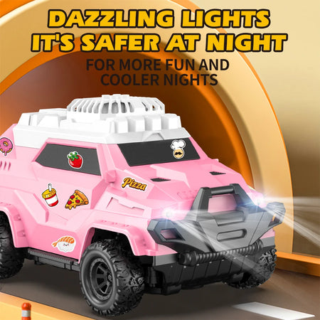Faceți cunoștință cu CONUSEA Remote Control DIY Sticker Fan Car—o mașinuță RC jucăușă, cu design de desen animat, care funcționează și ca un mic ventilator de birou cu iluminare ambientală. Perfectă pentru sesiuni în interior și joacă în aer liber, acest mic vehicul aduce imaginația la viață cu autocolante personalizabile care permit copiilor și colecționarilor să-și creeze propriul aspect unic. Dimensiunea sa compactă și viteza prietenoasă o fac ușor de manevrat, oferind în același timp acțiune captivantă, lumină și flux de aer într-un pachet compact.