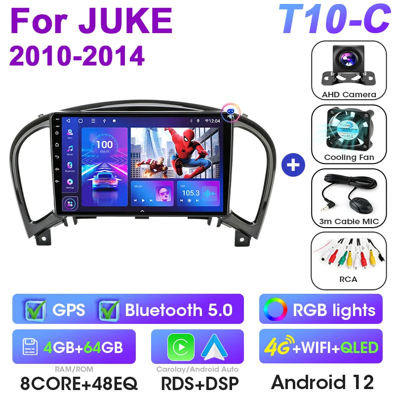 Upgradează-ți Nissan JUKE cu Develuck 2Din Android 12 Car Stereo, o unitate principală modernă și performantă, proiectată să înlocuiască sistemul original în modelele din 2010–2014. Ecranul tactil de 9 inch, potrivirea precisă double-DIN și sistemul real Android 12 oferă o experiență de condus fluidă și intuitivă, aducând CarPlay, Android Auto, navigație GPS și conectivitate multi-rețea direct pe bordul tău. Bucură-te de culori mai vii, lansări mai rapide ale aplicațiilor și o călătorie mai conectată fără a compromite stilul original al mașinii tale.