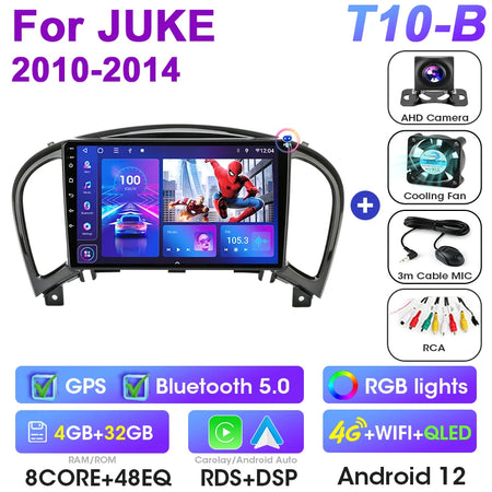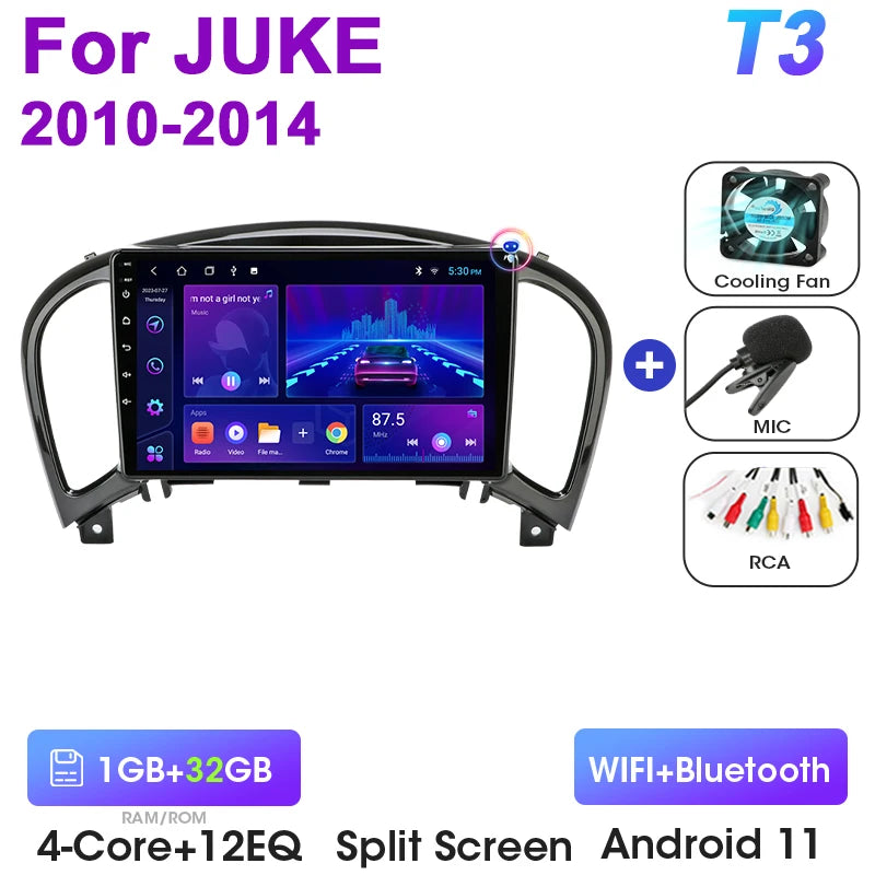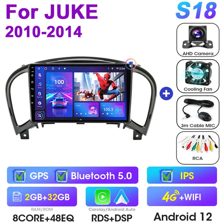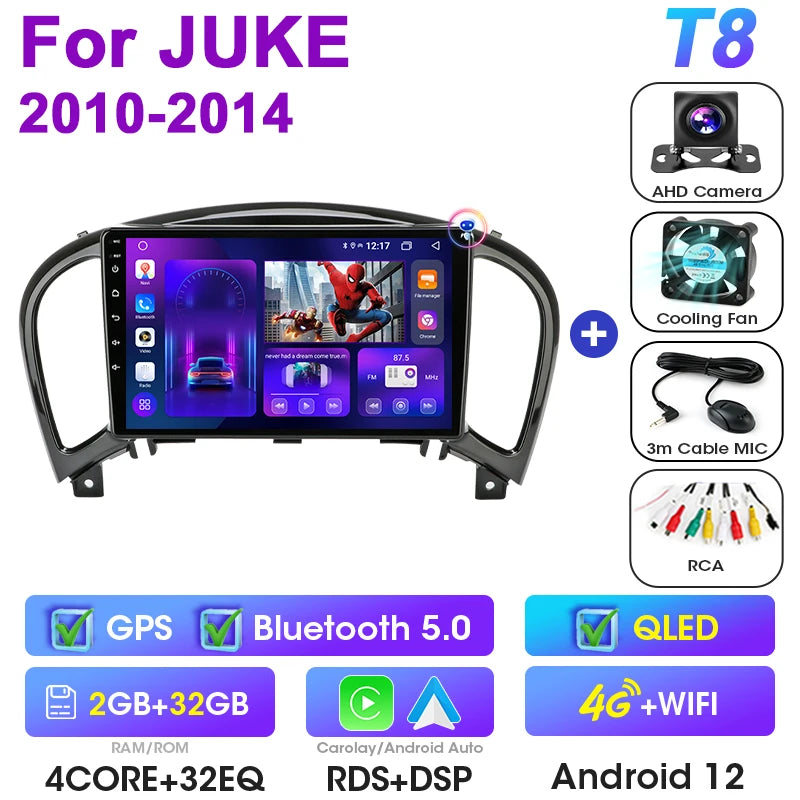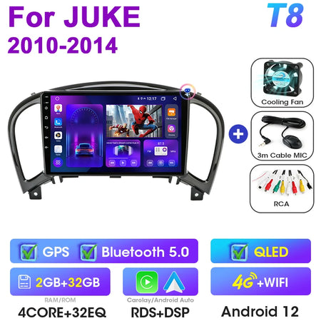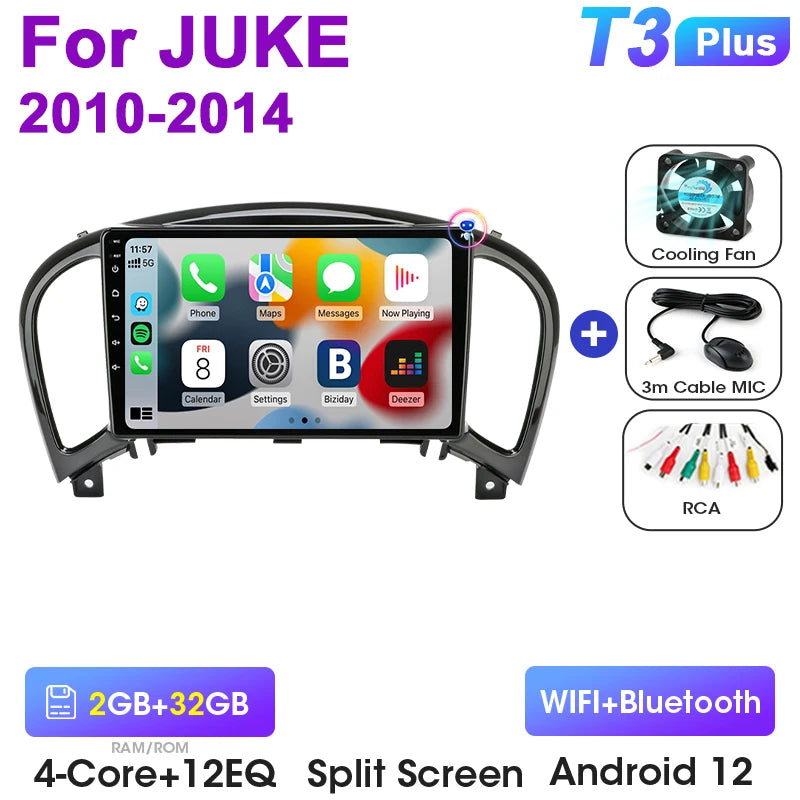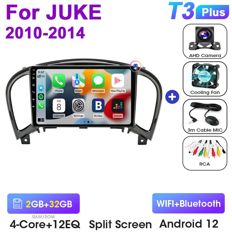 Stereo auto 2Din Android 12 Nissan Juke 2010 2014 CarPlay