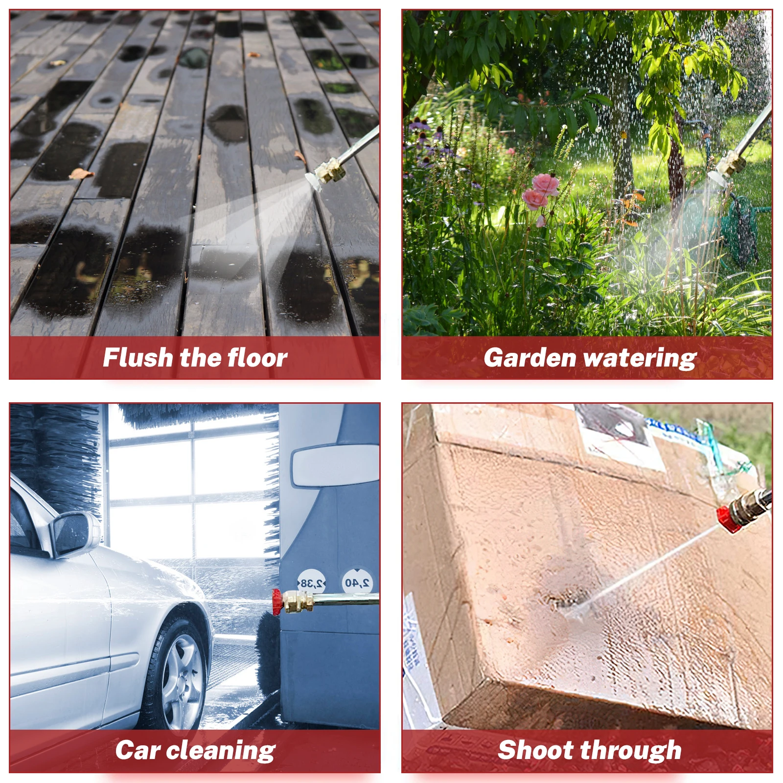 5. Pistol de apă multifuncțional, comutând liber tipurile de apă: duză rotativă, ajustând treptat debitul de apă de la mic la mare.