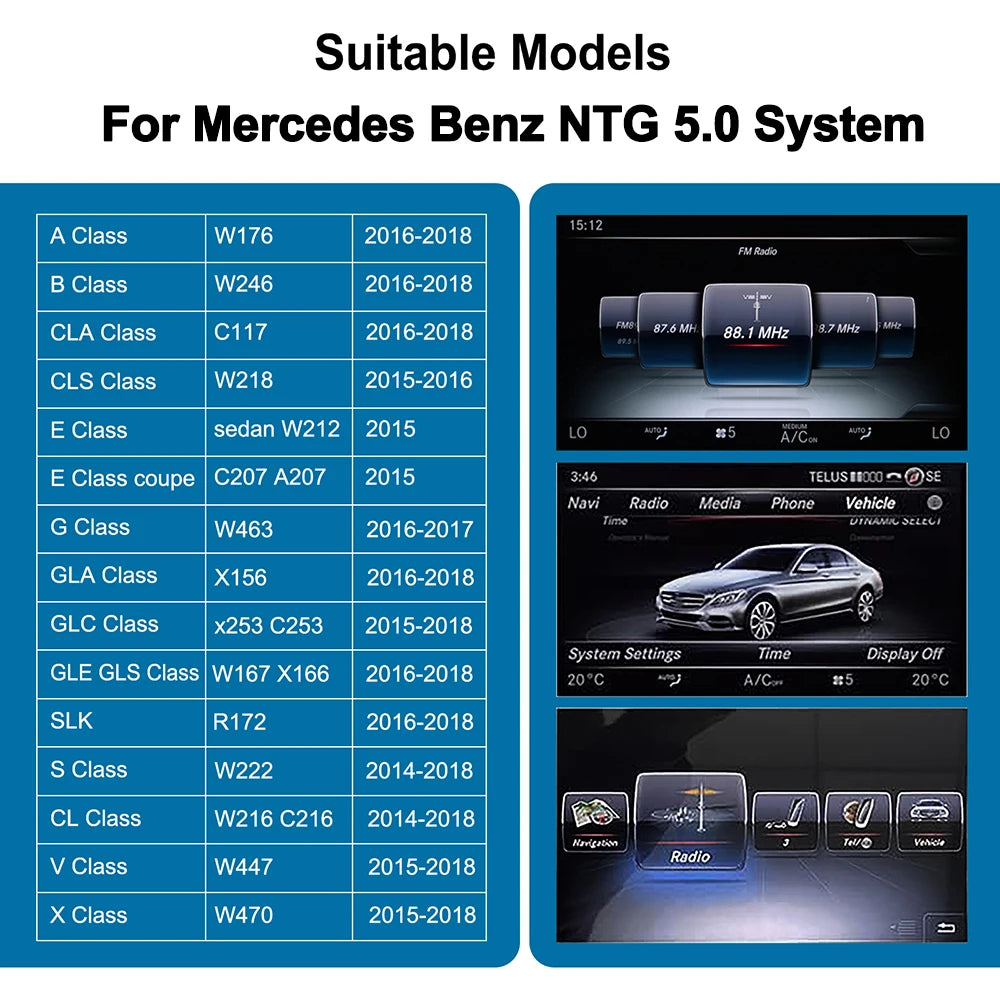 - Compatibilitate: unități principale Mercedes-Benz NTG5.0/NTG5.1; proiectat pentru S-Class W222 cu afișaje de 7.4" / 8.4" / 12.3"