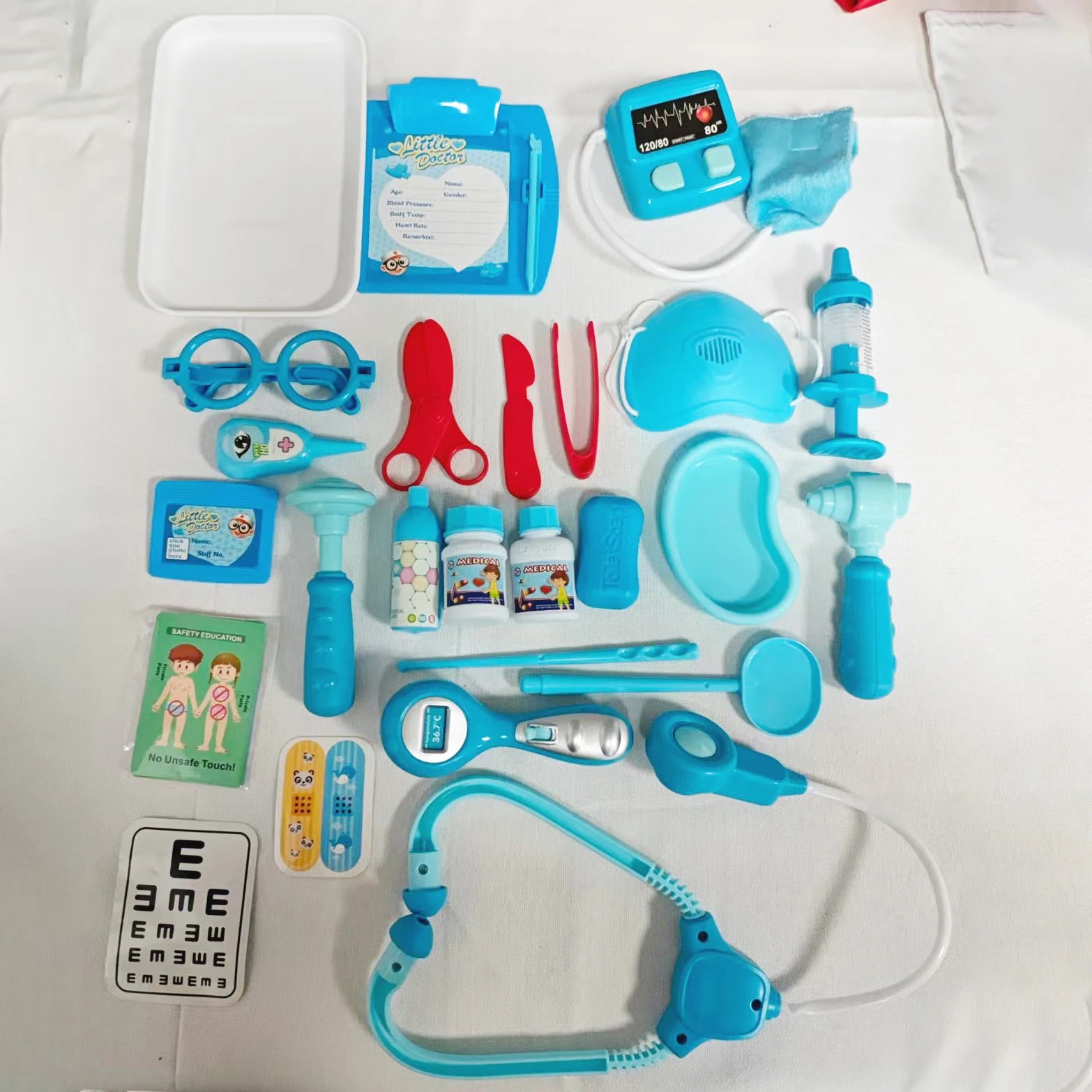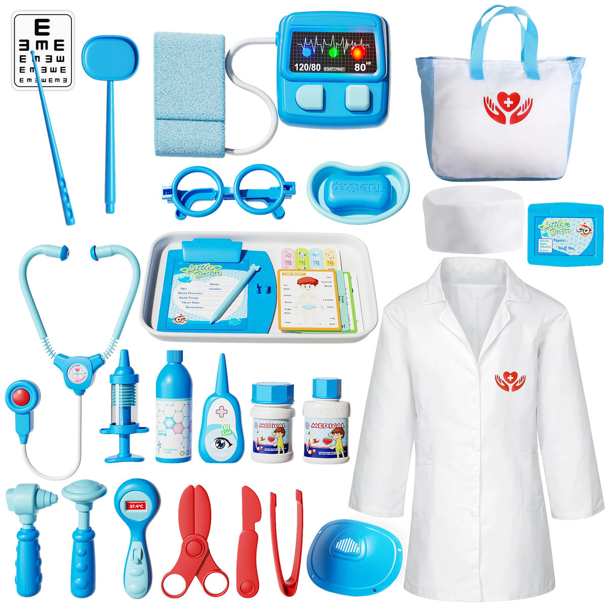 Prezentăm Setul de Jucării Doctor cu 30 de Piese, un kit versatil, inclusiv din punct de vedere al genului, destinat copiilor cu vârsta de 3 ani și peste. Fabricat din plastic durabil, acest set cuprinzător de 30 de piese oferă o experiență realistă de joacă în clinică care stimulează imaginația, dezvoltă empatia și construiește încrederea în tinerii doctori aspiranți.