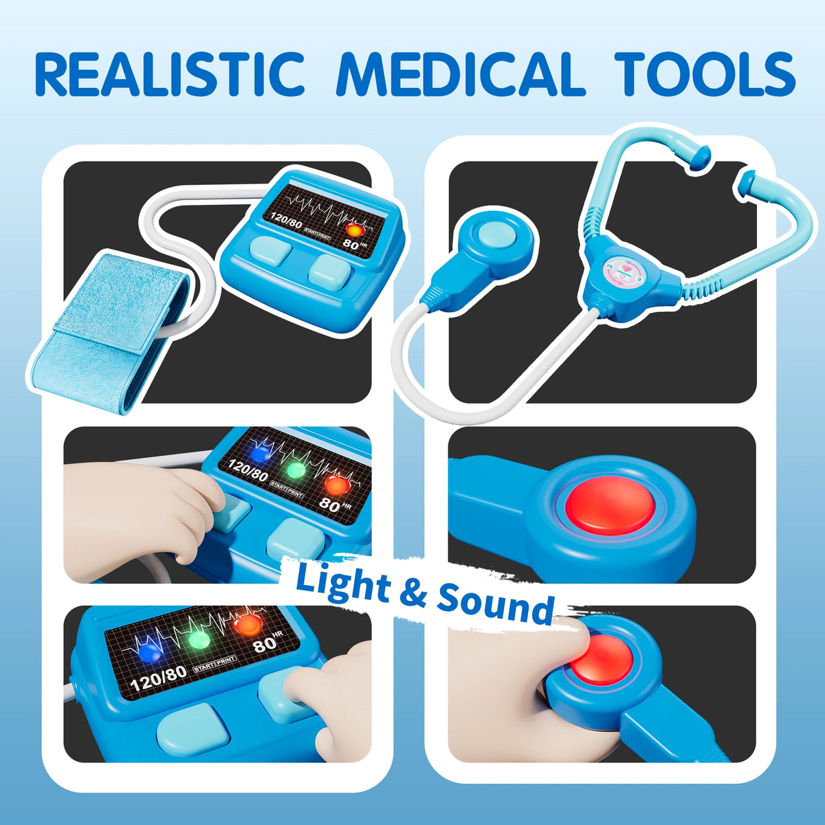 - Aprinde imaginația și abilitățile sociale: Copiii joacă rolul de doctori, exersând ascultarea, îngrijirea și munca în echipă cu prietenii și familia.