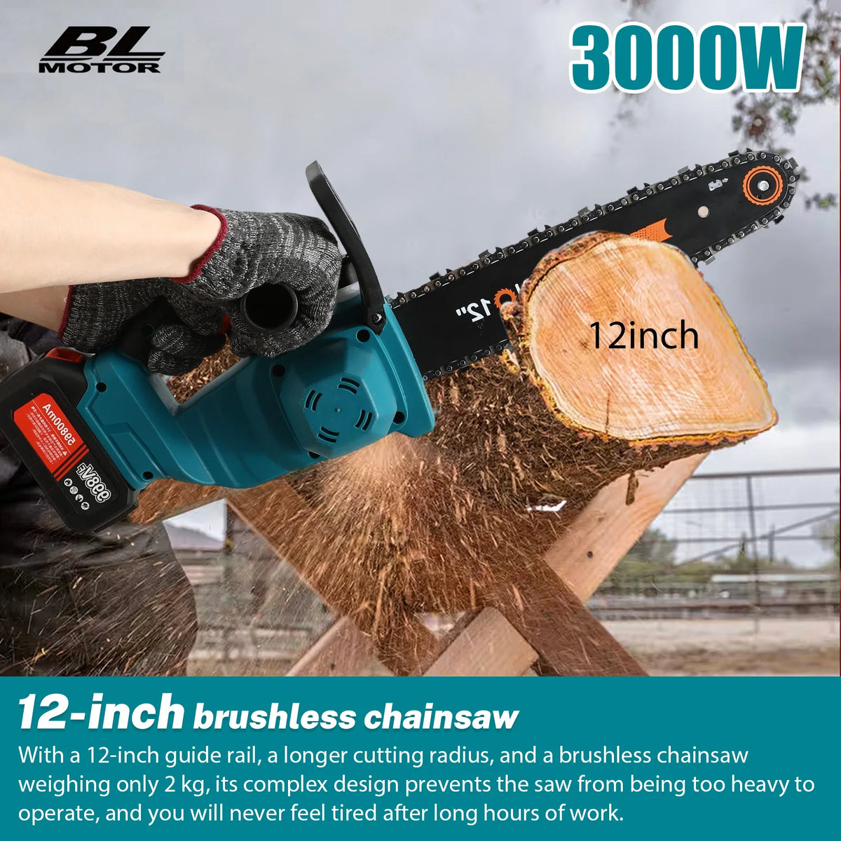 Perfect pentru lucrări în aer liber, întreținerea grădinilor și proiecte comerciale ușoare, susținut de o garanție de 2 ani. Adăugați fierăstrăul fără perii de 3000W 12 Inch la trusa dumneavoastră de unelte astăzi pentru a accelera sarcinile de tăiere și a vă bucura de putere fiabilă, fără fir, la fiecare muncă.