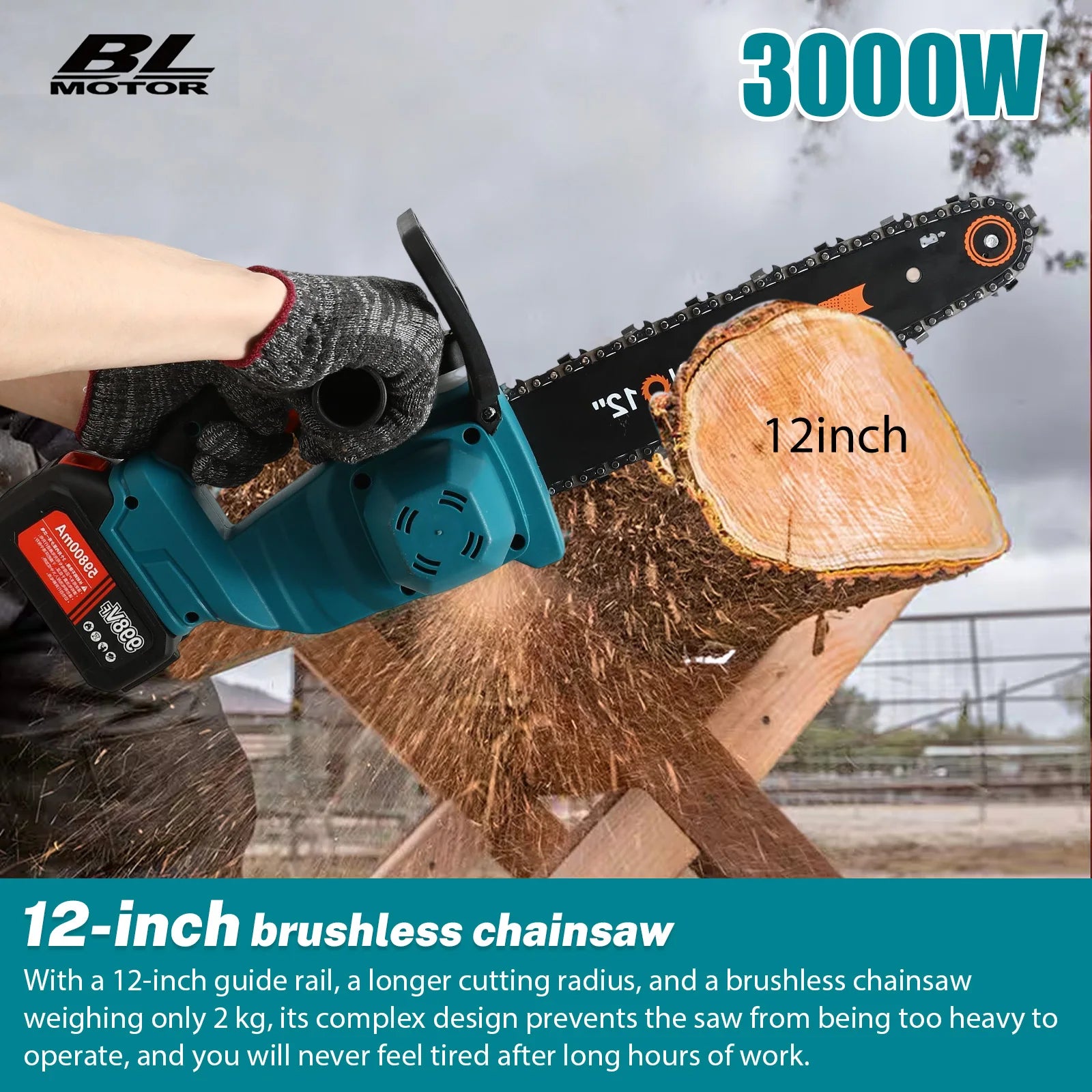 3000W 12 Inch Fierastraie fără perii – Compatibil cu Makita 18V — Fierăstrău electric fără fir puternic, proiectat pentru tăierea lemnului de uz greu, tăierea grădinilor și utilizare comercială. Combină un motor fără perii de clasă 3000W cu o capacitate de tăiere de 12" și compatibilitate cu bateria Makita 18V pentru performanță de înaltă eficiență și întreținere redusă.