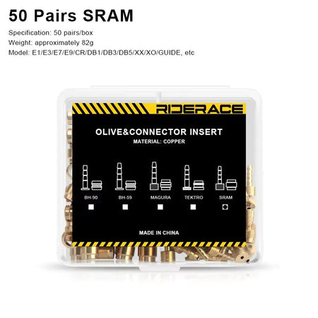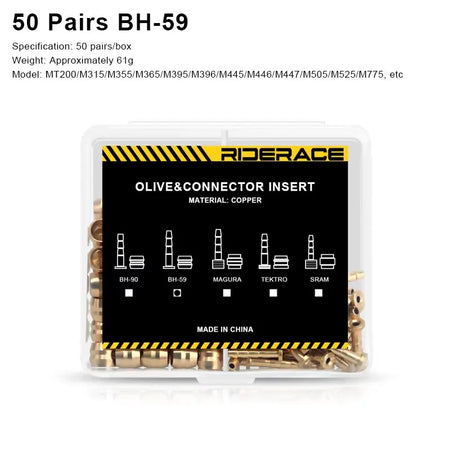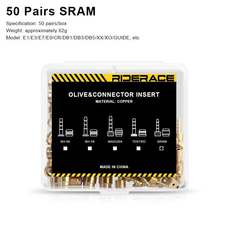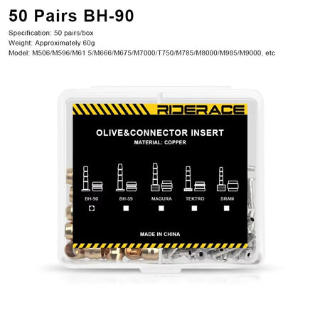 Setul de olive pentru frână Riderace BH90 BH59 este un pachet de 50 de perechi de olive pentru frână, conceput pentru sisteme de frâne hidraulice pe disc, cu compatibilitate specială pentru modelele BH90 și BH59. Aceste olive oferă etanșări precise pentru linia hidraulică, ajutând la prevenirea scurgerilor și a pătrunderii aerului în timpul aerisirii frânelor. Folosit împreună cu un instrument compatibil de aerisire a uleiului, acest set asigură un proces curat și eficient de aerisire, restabilind performanța și senzația frânării pentru o putere de oprire în care să aveți încredere.