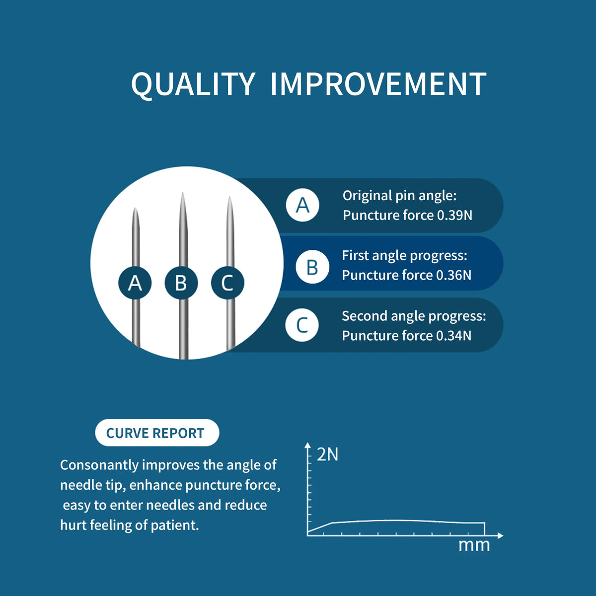 Avantajele cheie includ un finisaj triplu lustruit și un strat pe vârfuri care susține o inserție lină, aproape nedureroasă. Miezurile de ace din oțel inoxidabil cu rezistență ridicată oferă o senzație receptivă și fiabilă în timpul tratamentului, făcându-le potrivite pentru o gamă largă de tehnici de acupunctură și niveluri de confort ale pacientului. Setul include un tub pentru ace portabil pentru manipulare și aplicare ușoară, iar produsele sunt destinate utilizării unice pentru a menține igiena și siguranța.