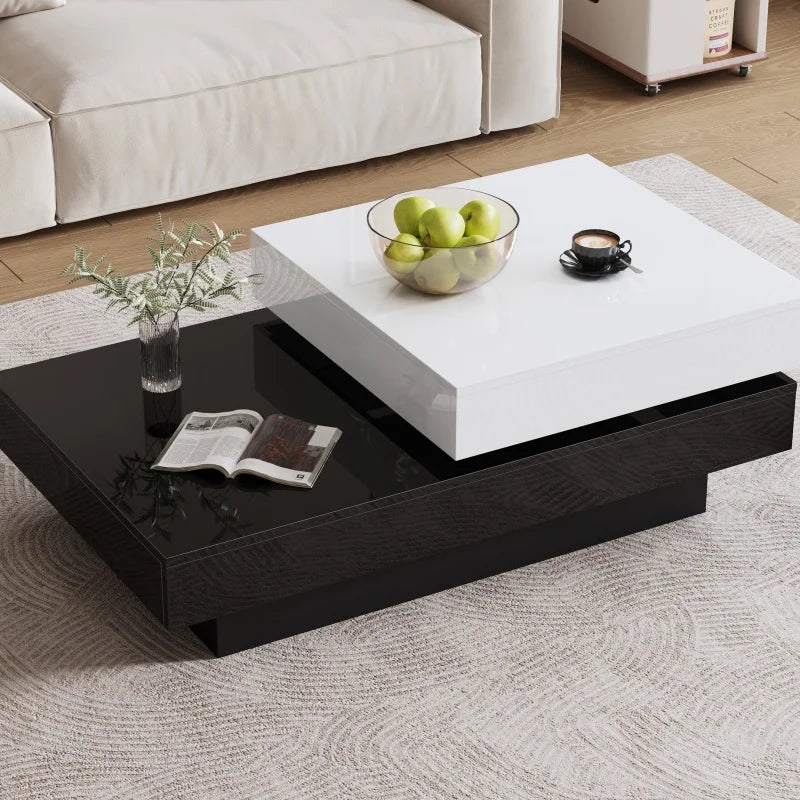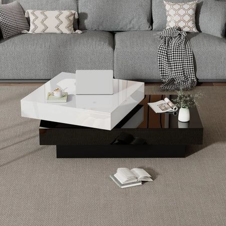 Masă de cafea cu turnantă alb-negru pentru living