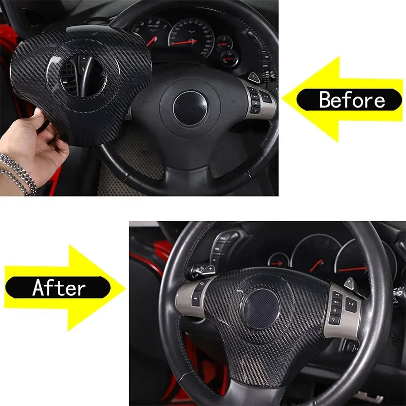 - 1 x Ornare pentru Volan din Fibră de Carbon Reală pentru Corvette C6 (2005-2013)