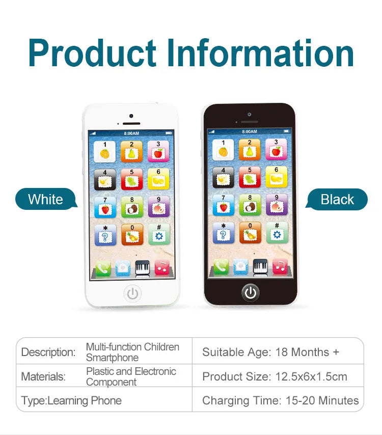 Ce este inclus în pachet: 1 x Telefon Simulativ pentru Copii Jucărie Muzicală pentru Bebeluși (baterie instalată).