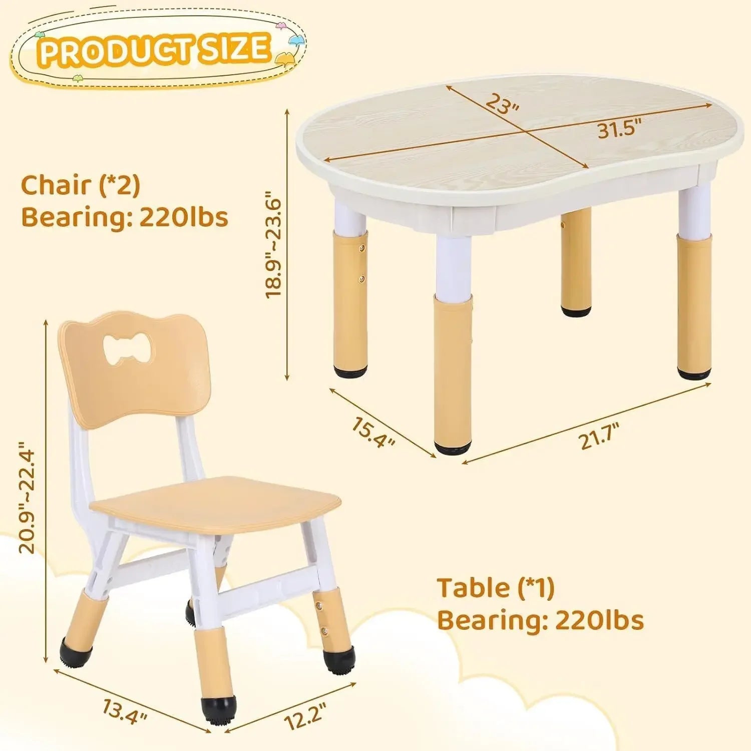 Masă pentru copii cu înălțime ajustabilă și 2 scaune birou din plastic