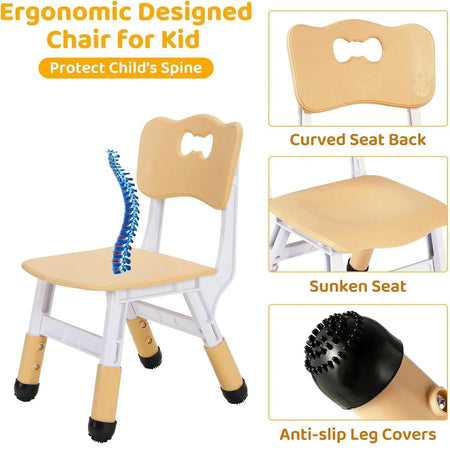 - Design care crește odată cu copilul: 7 setări de înălțime pentru masă (48–60 cm) și 3 înălțimi pentru scaun (53–57 cm) asigură utilizare confortabilă de la copil mic până la preadolescent.