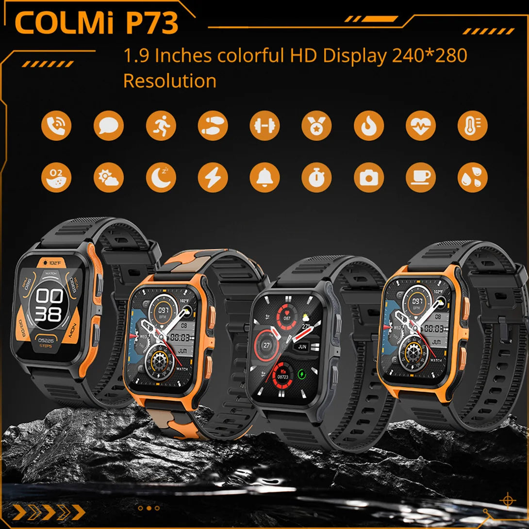Faceți cunoștință cu ColMi P73 Military 1.9 Inch Smartwatch — un ceas inteligent robust, plin de funcții, creat pentru stiluri de viață active. Ecranul său color TFT de 1,9 inch oferă imagini clare la soare sau la umbră, în timp ce chipsetul JL7013 asigură performanțe fluide în peste 100 de moduri sportive și o suită completă de sănătate. Construit cu o curea din silicon (gel de silice, 20mm) și un cadran din sticlă durabil, acest ceas este pregătit pentru purtarea zilnică, antrenamente și aventuri în aer liber.