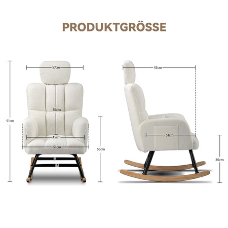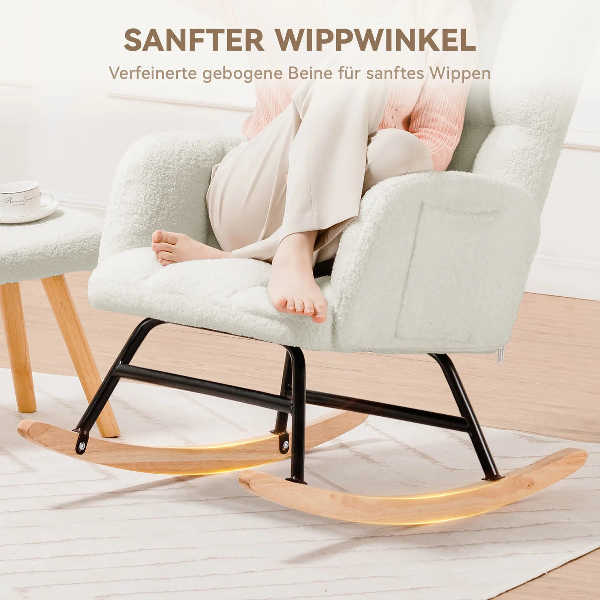 Descoperiți Scaunul balansoar Comhoma Teddy Plush cu cotiere în bej — o soluție modernă și confortabilă, concepută să îmbine confortul cu un stil minimalist. Husa din țesătură teddy este moale la atingere și delicată cu pielea, fiind o completare perfectă pentru living, dormitor, camera copilului sau colțurile de lectură. Spătarul înalt, tetiera de susținere și cotierele confortabile se combină cu o mișcare naturală de legănare pentru a reduce stresul, a calma mușchii obosiți și a invita la momente lungi și odihnitoare de citit sau somn.