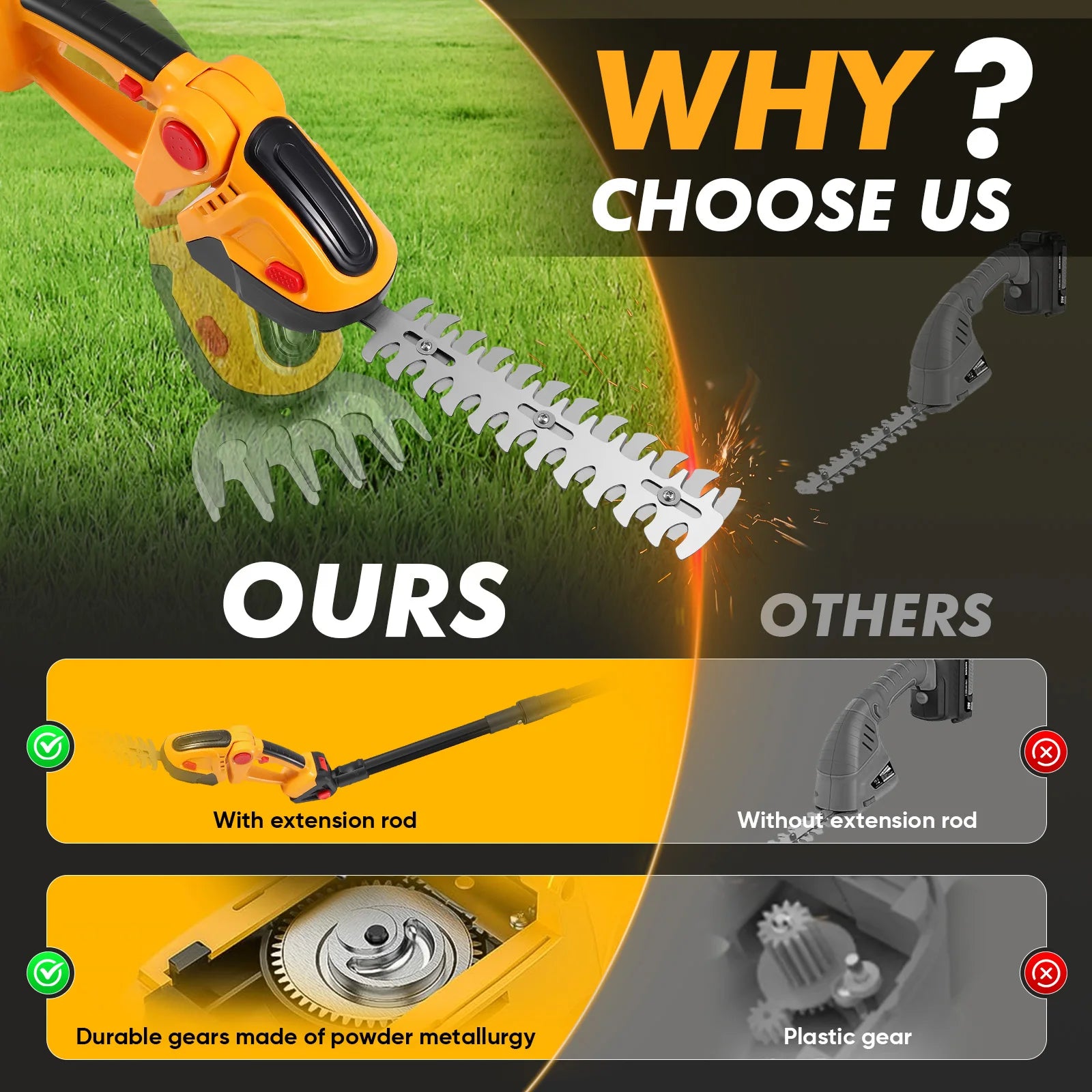- Ajungeți la garduri și arbuști înalți fără scări, reducând efortul asupra spatelui.